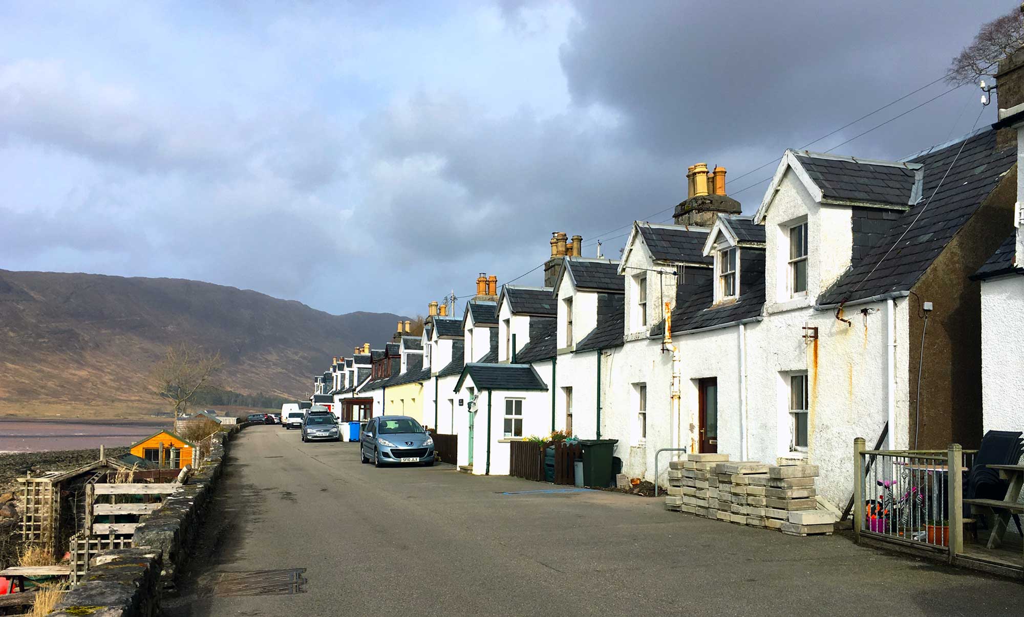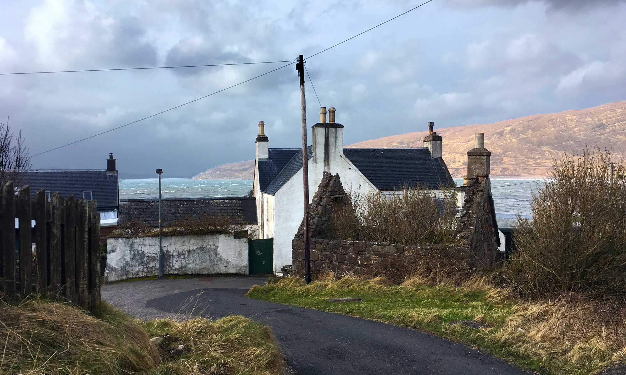 Witzig waren die Gärten vor den Häusern auf der anderen Seite der Strasse. Aber es gab auch Häuser die nicht in der Reihe standen. Wie man auf dem Foto sieht, liegt Applecross in einer Bucht, mit Blick nach Nord/Westen. Daher der Windschatten.