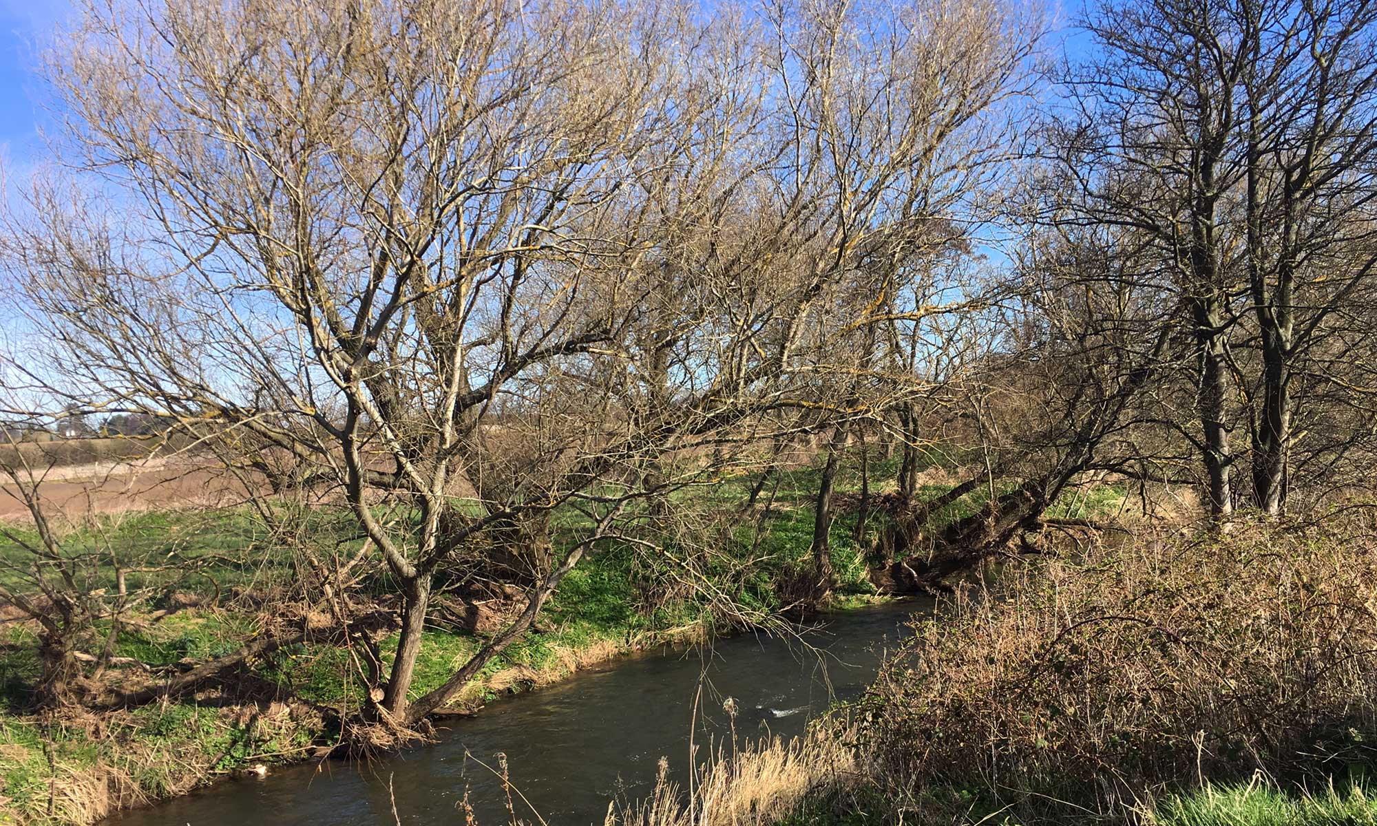 Wieder geht es über die Brücke am Forth und an Edinburgh vorbei. Danach verlasse ich die Autobahn und wir fahren über die Landstrasse Richtung Süd/Ost dem Meer entgegen. Der Plan ist später Nahe der Grenze einen Campingplatz zu finden. In der Höhe von Preston wird Blixa unruhig, und ich biege Richtung Städtchen ab. Etwas außerhalb parke ich das Auto und wir gehen am Tyne spazieren. Ein herrlicher Frühlingstag. Wir wandern an Feldern und Wiesen entlang und landen an einer Mühle.