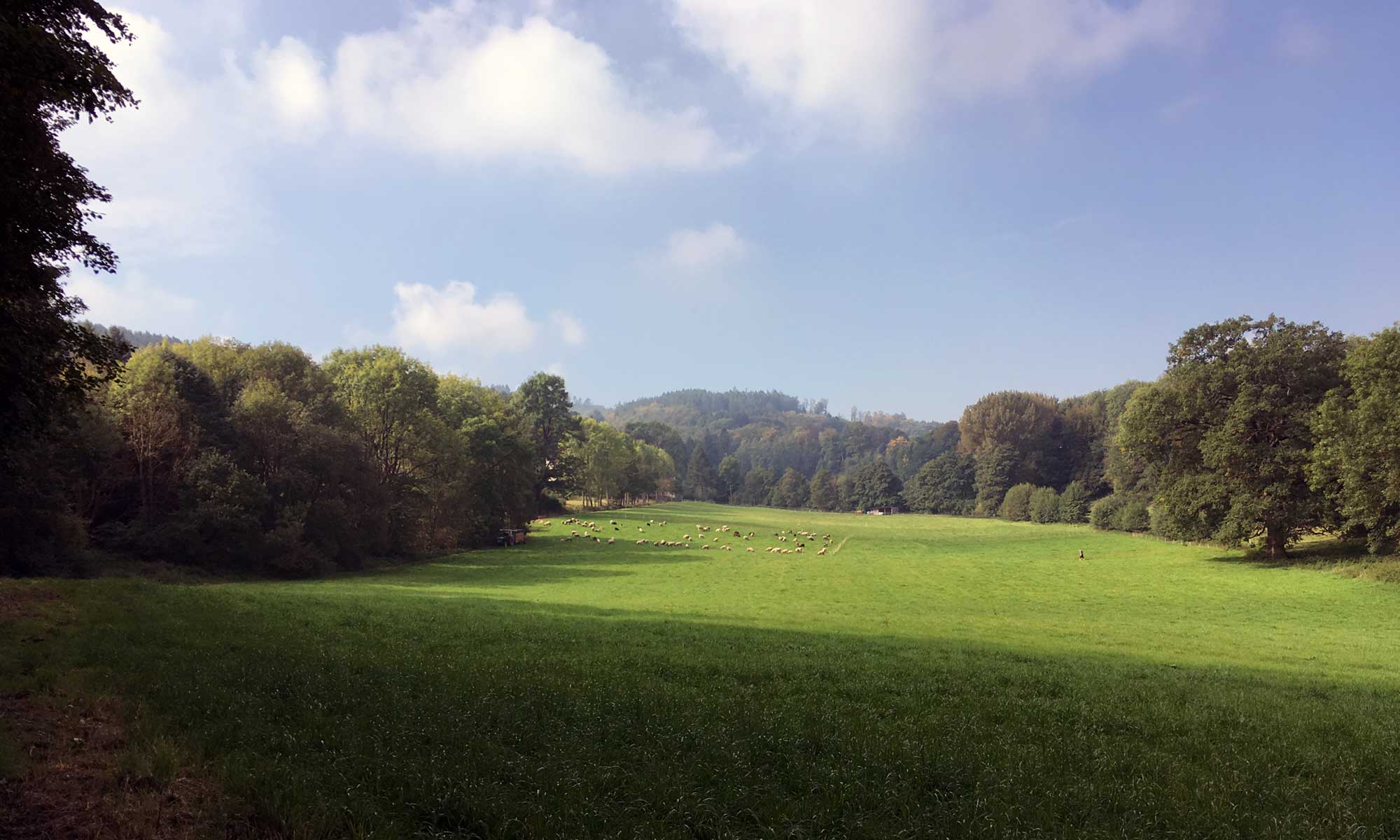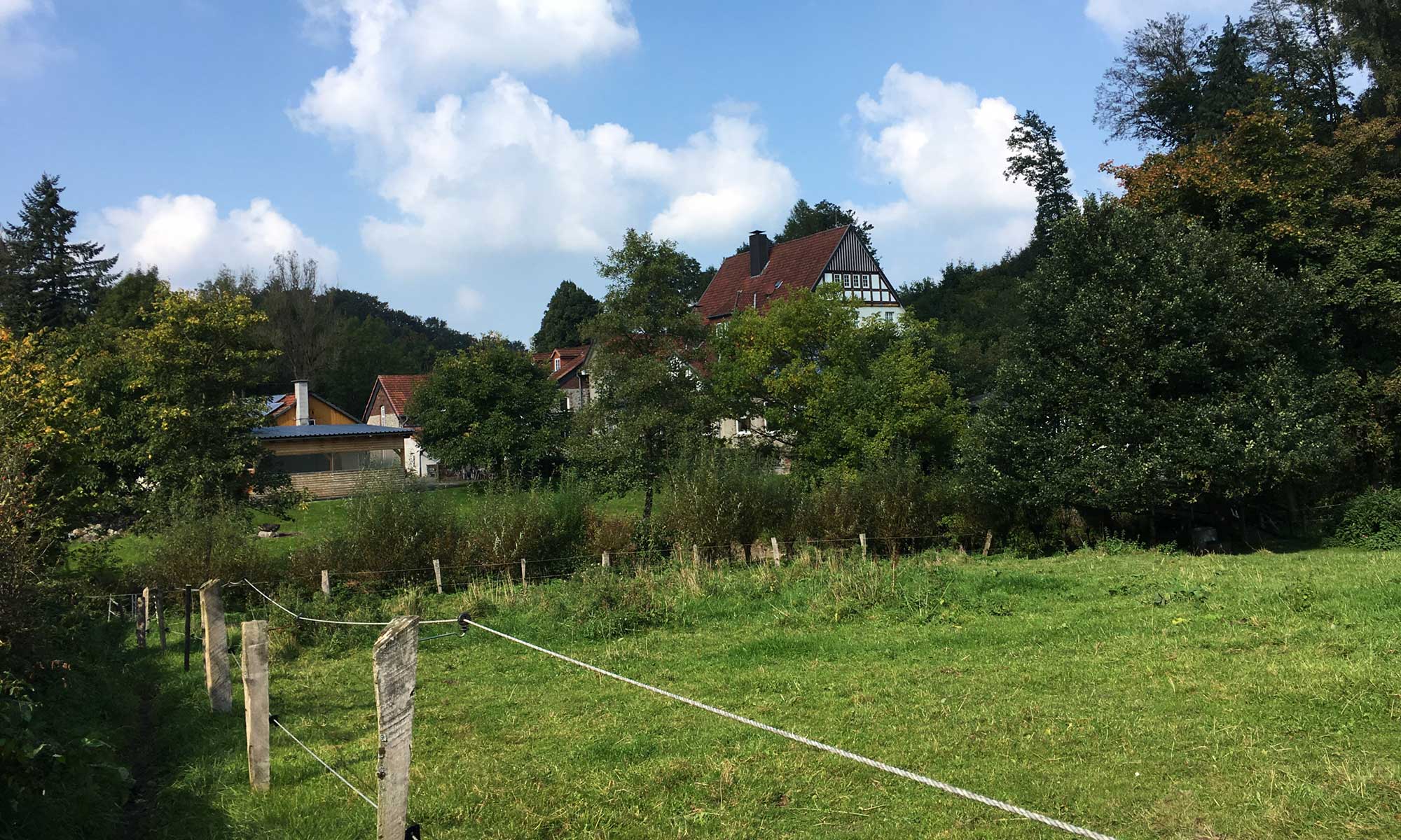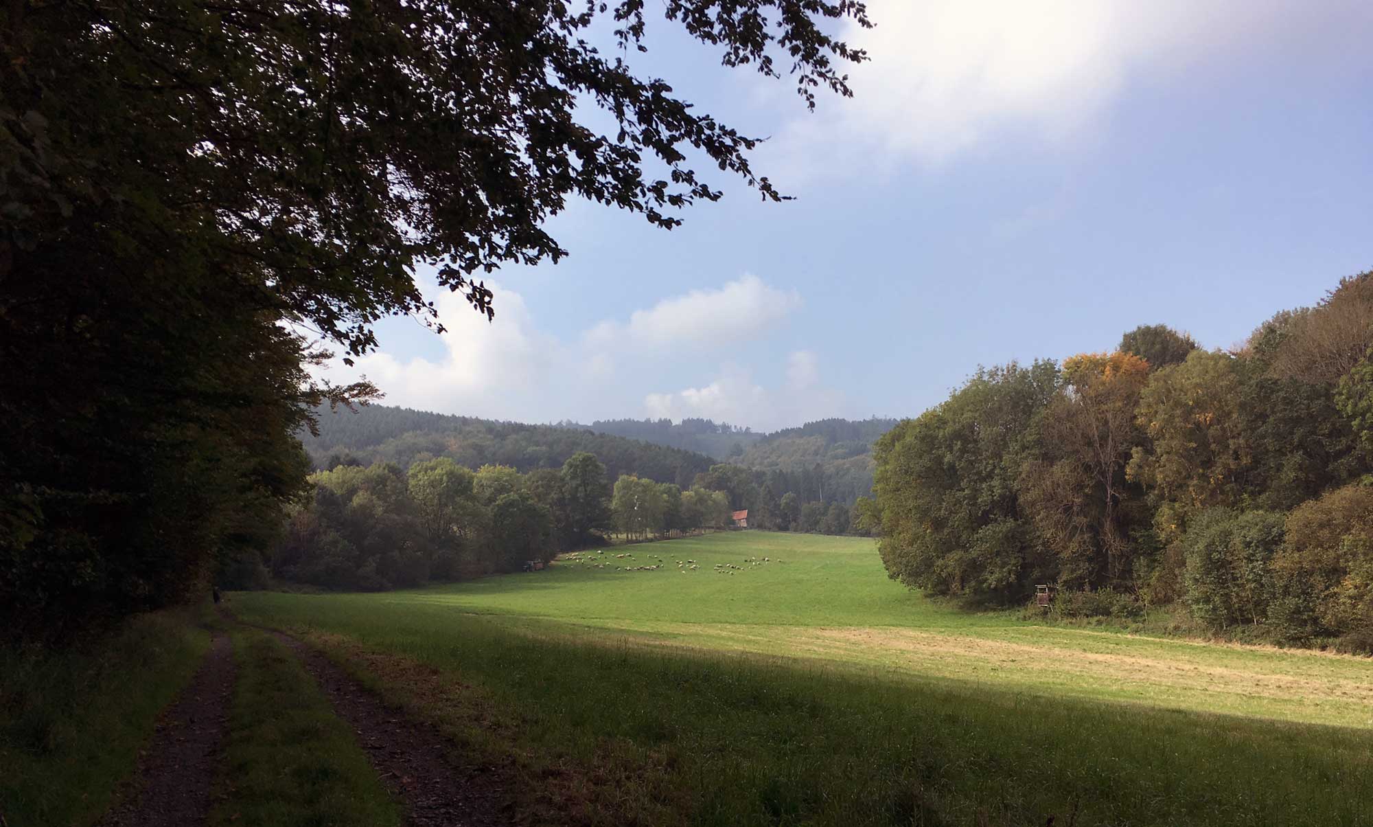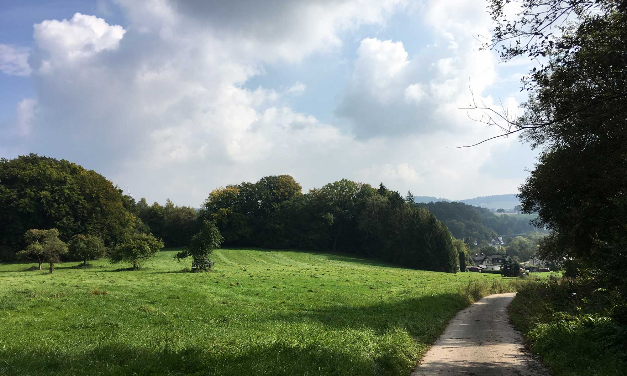 „Oben“ angekommen folgen wir dem Weg Richtung Hemer nach Westen und erreichen schnell das liebliche Tal vor Baeingsen.