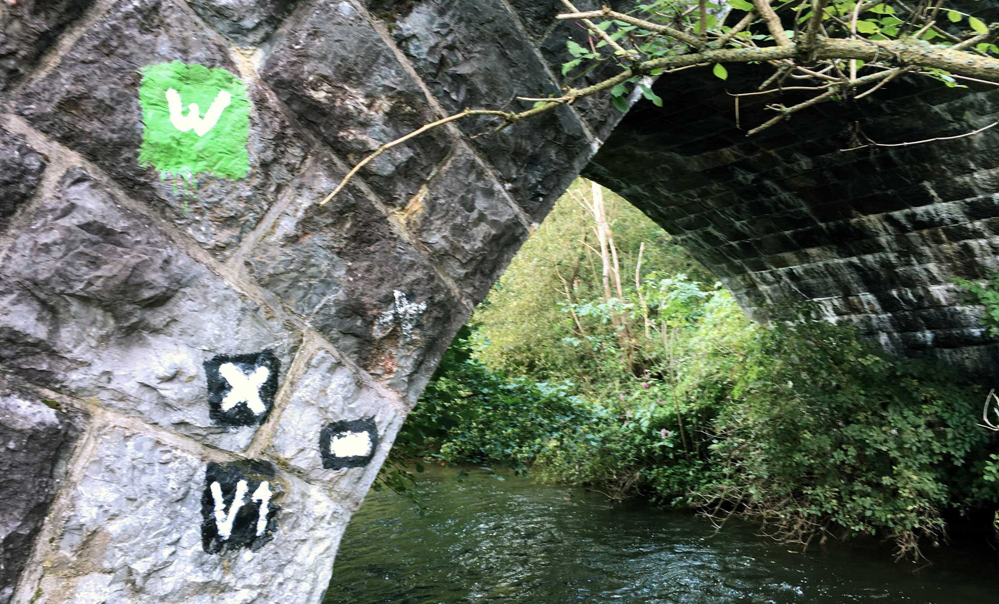 Kurz vor Haus Recke (soll gut sein, aber als Veganer und mit Hund kein Ausflugsziel) gehen wir an einer Pferdeweide entlang und unterqueren ein letztes Mal die Bahngleise direkt an der Hönne. Ein Lieblingsmotiv: