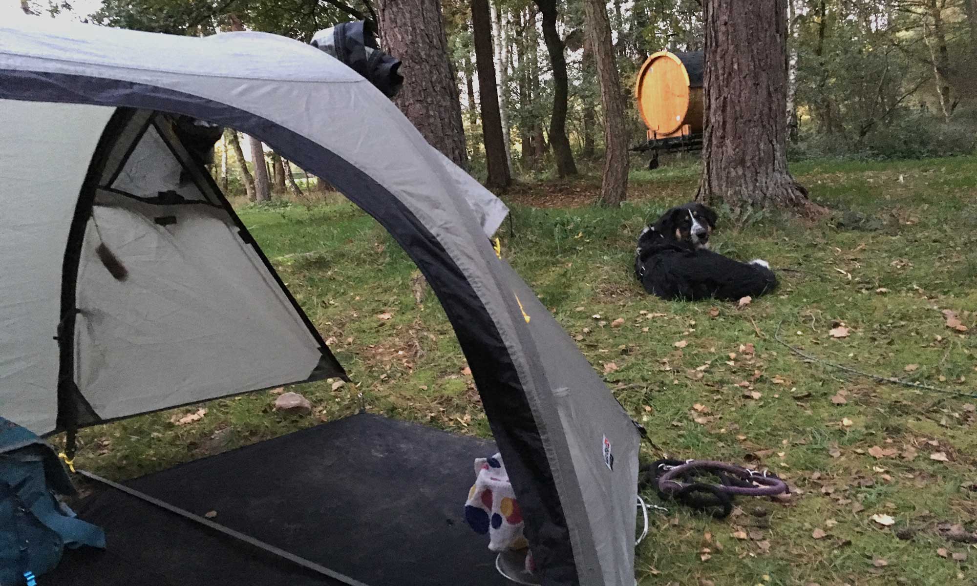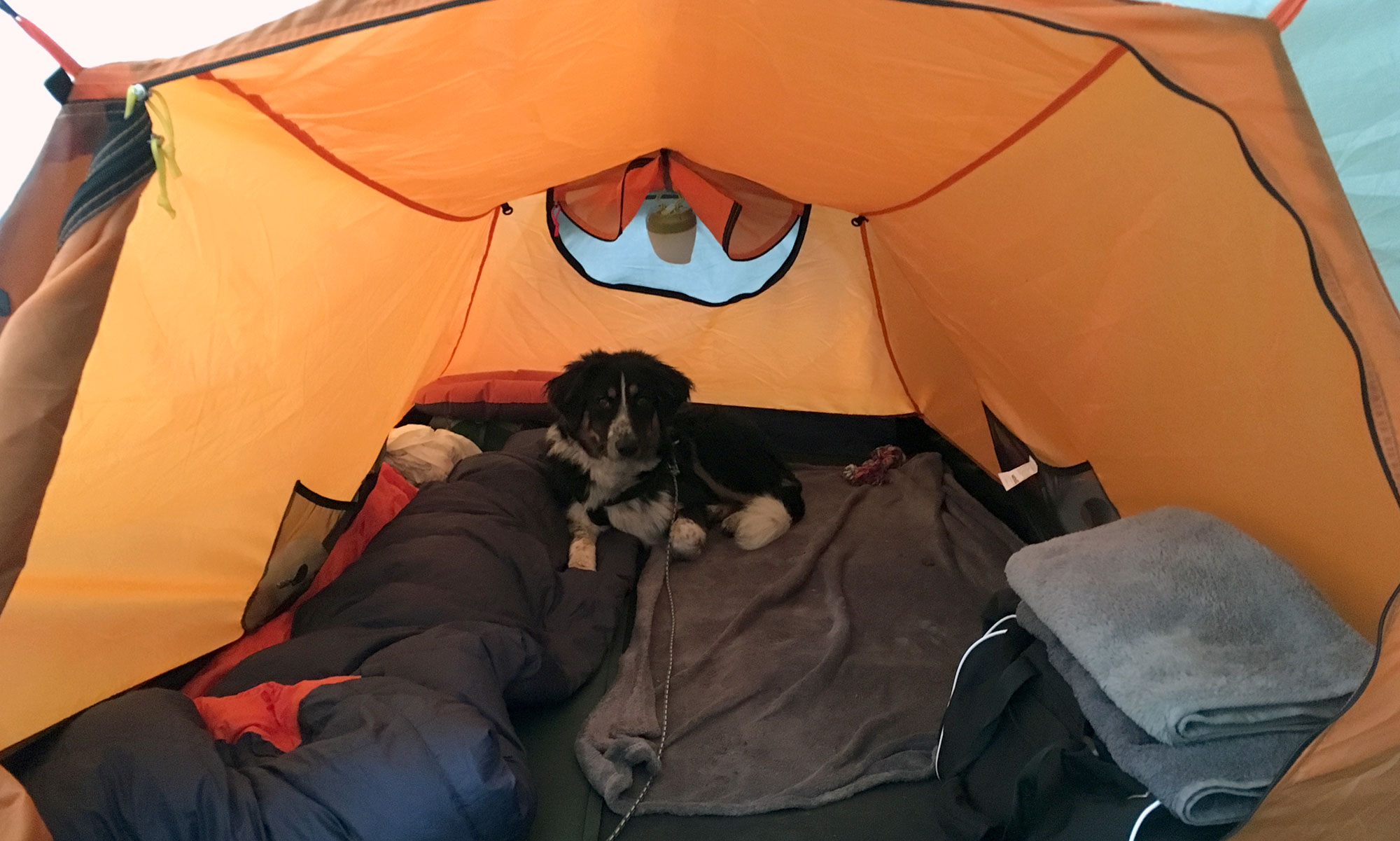 Mit Blixa war das in der Nacht kein Problem, er blieb locker im Zelt. Mit Mozart sieht das etwas anders aus, deshalb habe ich einen kleinen Pisspot mit dabei, der wird dann, falls er in der Nacht benutzt wurde, am Morgen ausgeleert und gut ist.