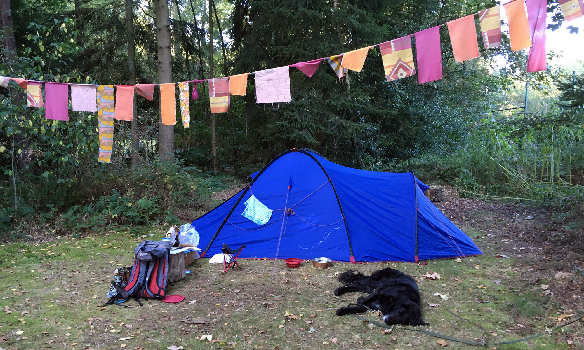 Dementsprechend ist es, wenn auch im Schatten der Bäume, dem Sonnenlicht ausgesetzt. Also ist die Wahl ein günstiges, praktisches Tunnelzelt mit großer Apsis, falls es mal Regnet.