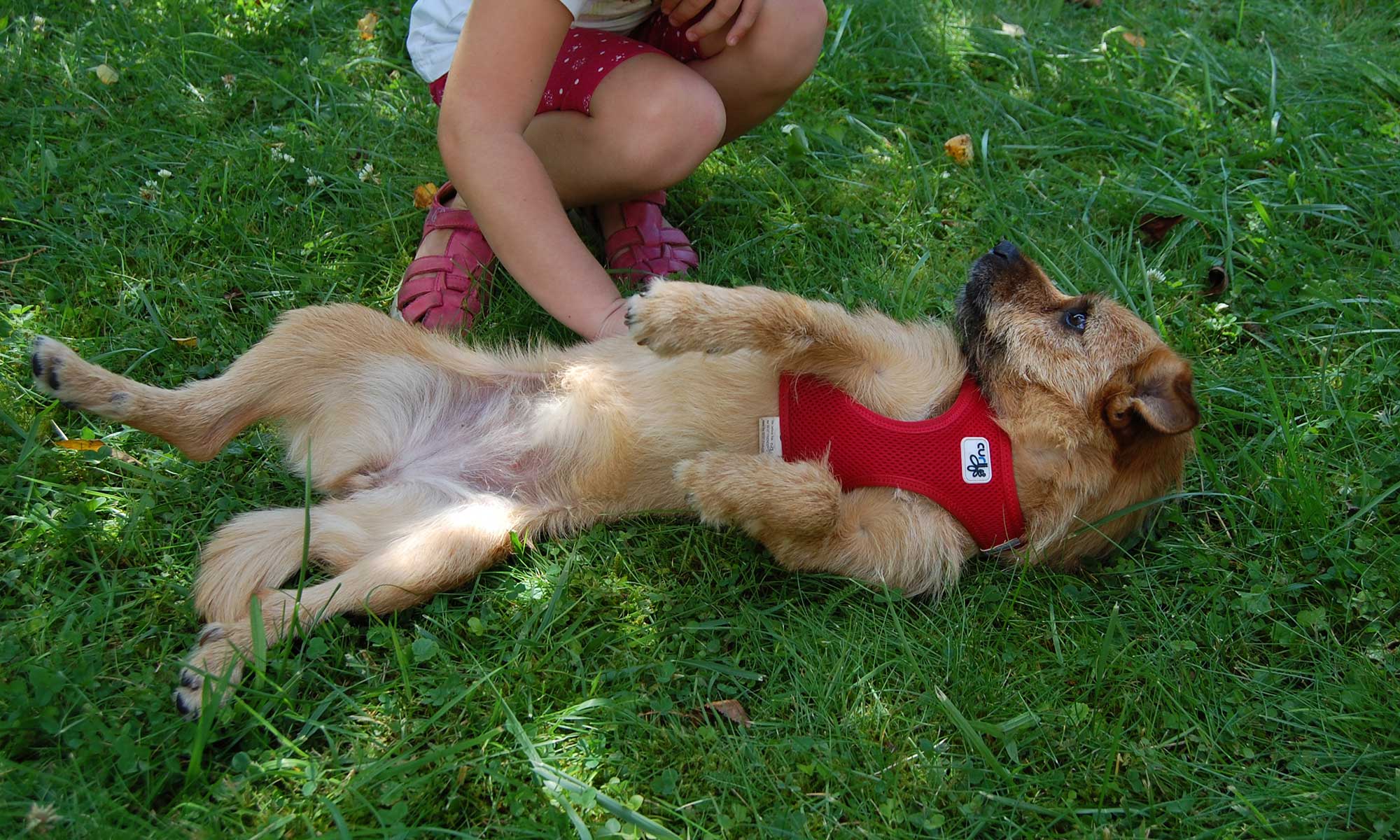 So kam Fibi bei mir an. Das hab mich lieb und auf den Rücken werfen habe ich ihr nicht ganz abgewöhnen können, aber die Chefin, das habe ich direkt bei ihrer Ankunft geklärt. Es hat noch ein paar Tage und einigen Widerstand gedauert, aber Bellen am Zaun, anbellen von Fremden, also meinen Job übernehmen, das konnte ich ihr Stück für Stück abgewöhnen.