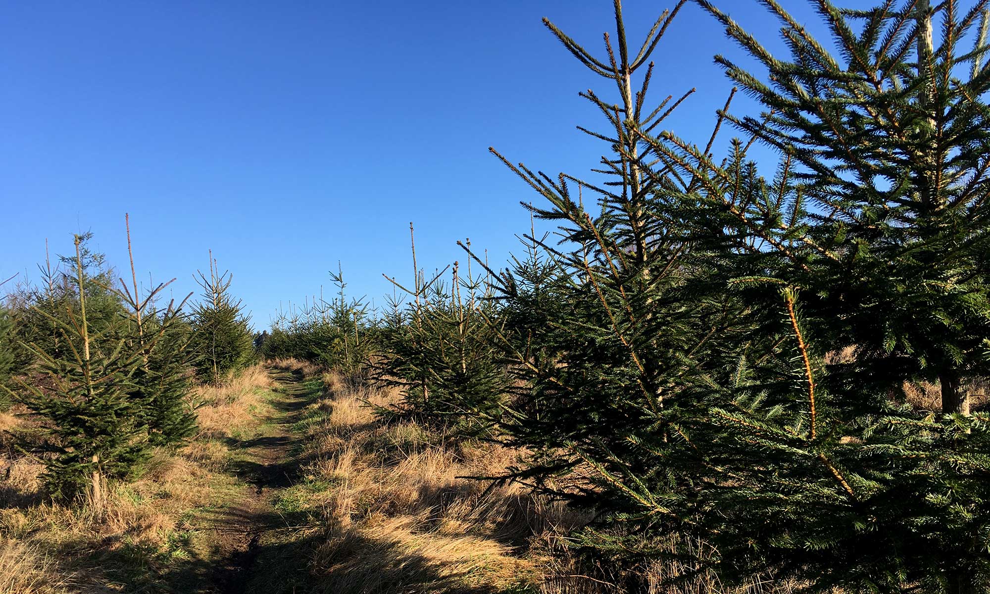 Jetzt sind wir tatsächlich im Weihnachtsbaum Land angekommen. Links Tannen, Tannen rechts. Wohin das Auge blickt. Plantagen voll mit Tannen. Ich bekomme den Tannenbaum Koller.  Das Beitragsbild ist der Höhepunkt des Tannen Wahnsinns.