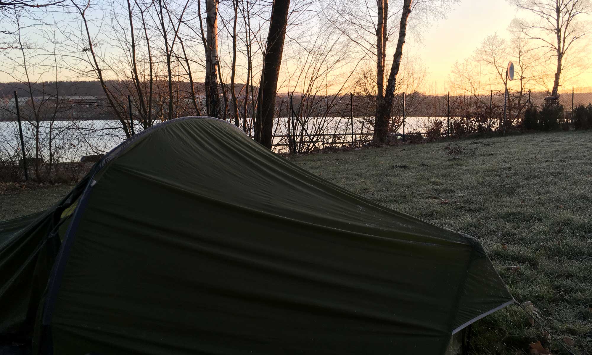 Mein Zelt war mit einer dünnen Eisschicht bedeckt, und da der Bus erst um 9:30 fährt, haben wir genügend Zeit für einen kleinen Spaziergang, man nennt sowas auch Kackrunde am Morgen. In der Zwischenzeit hat mein kleines Vango Zelt genügend Zeit um in der aufgehenden Sonne aufzutauen.