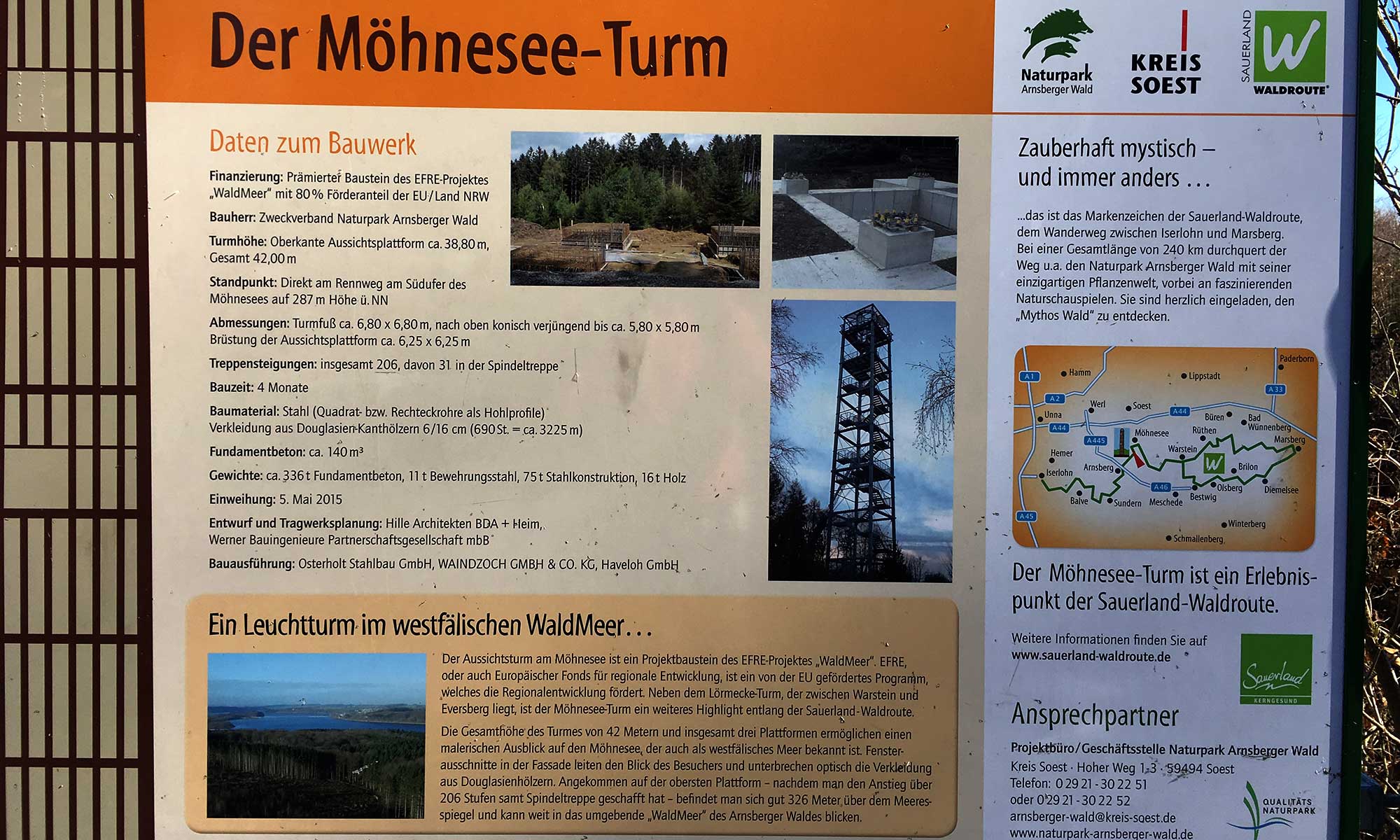 Nach etwa 2 Kilometern erreichen wir den Möhnesee Turm, den ich gestern schon von der Fußgängerbrücke sehen konnte.