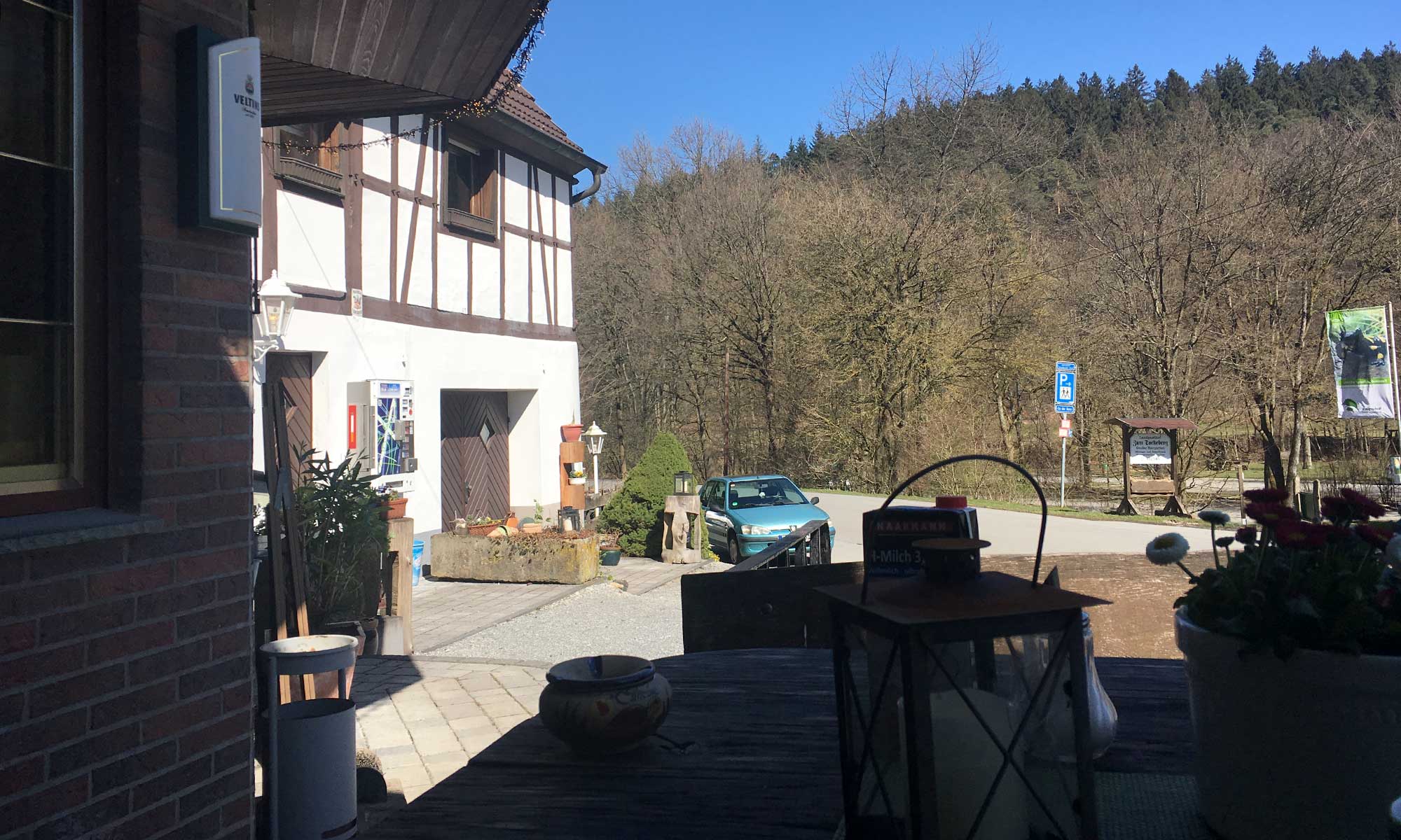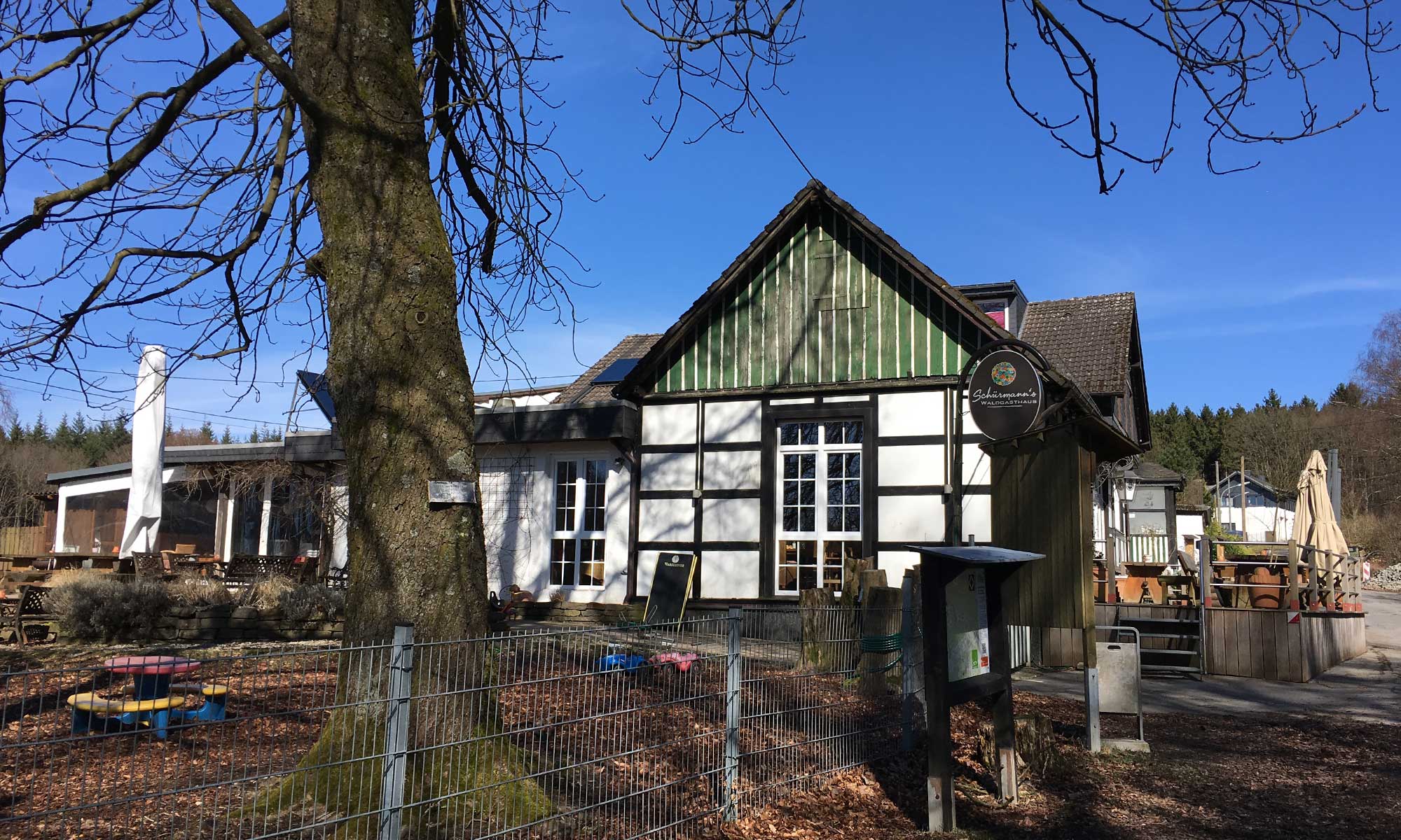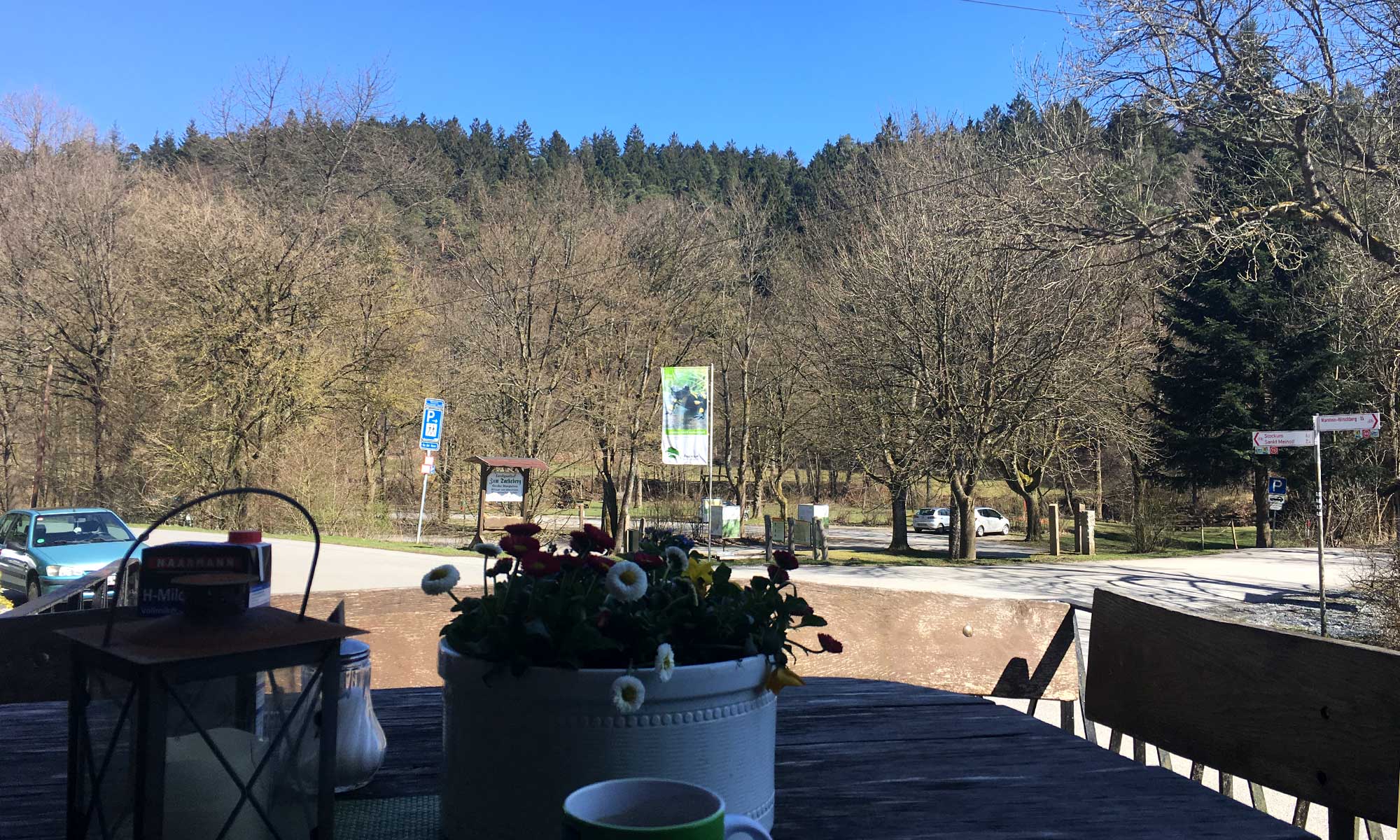 Wir haben noch eine Stunde Zeit bis das Taxi kommt und schlendern langsam zum Wanderparkplatz. Machen noch Bilder von den Tafeln und setzen uns anschließend auf die Terrasse des heute geschlossenen Waldgasthaus Schürmann’s.
