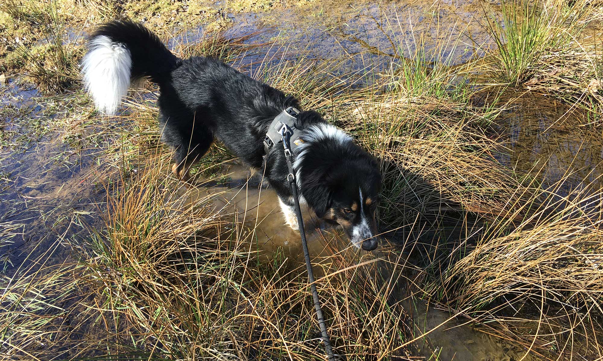 Mozart freut sich wieder unterwegs zu sein. Auch wenn er langsam lernt die Pausen auch als Pausen zum ausruhen zu nutzen. Jeder Bach würde am liebsten ausgetrunken, aber ich achte auf Stellen, an denen wir nichts zertrampeln, oder wo wir Tiere stören könnten.