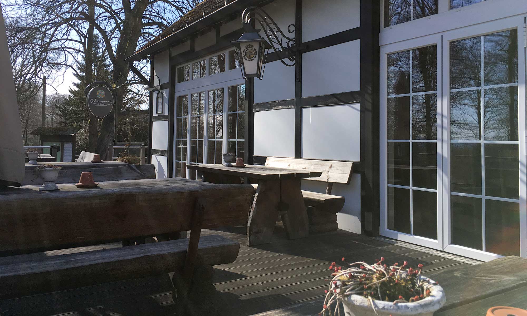 Auf der anderen Seite des Dörfchens, sozusagen am Ortseingang, oder Ortsausgang, je nachdem wie rum man es sieht, empfängt mich warme Herzlichkeit. Vor dem Gasthaus stehen zwei Personen und auf meine Frage: „Gibt es schon einen Kaffee bei Ihnen“, bekomme ich die Antwort: „Wir machen erst um 12 Uhr auf, aber einen Pott Kaffee, den können Sie gerne haben.“ WOW!