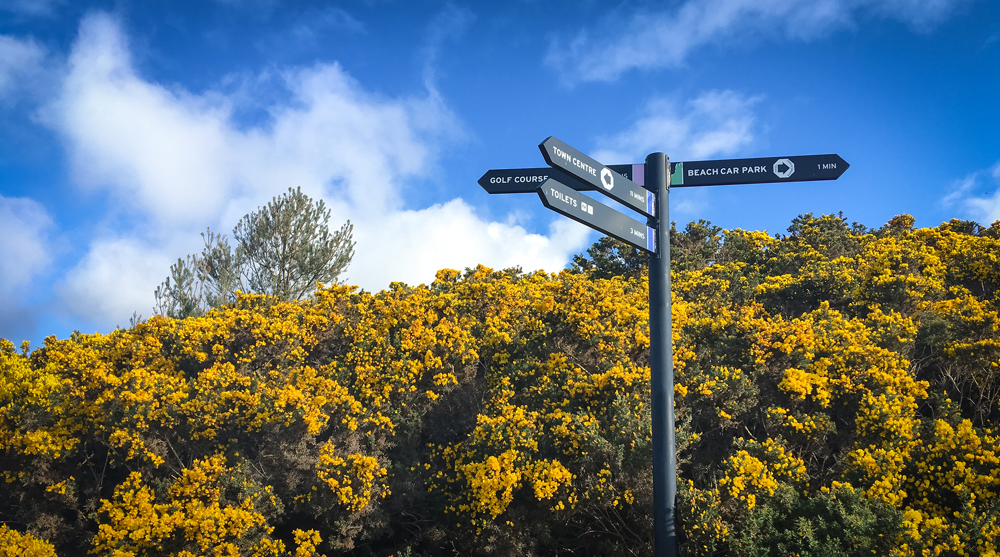 Am Ortsausgang halten wir uns westlich und folgen einem Wegweiser, der uns in die Coul Links führt.
