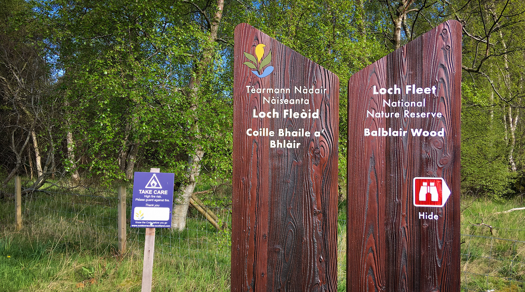 Dann unbedingt rechts auf den Wegweiser zum Balblair Wood achten.