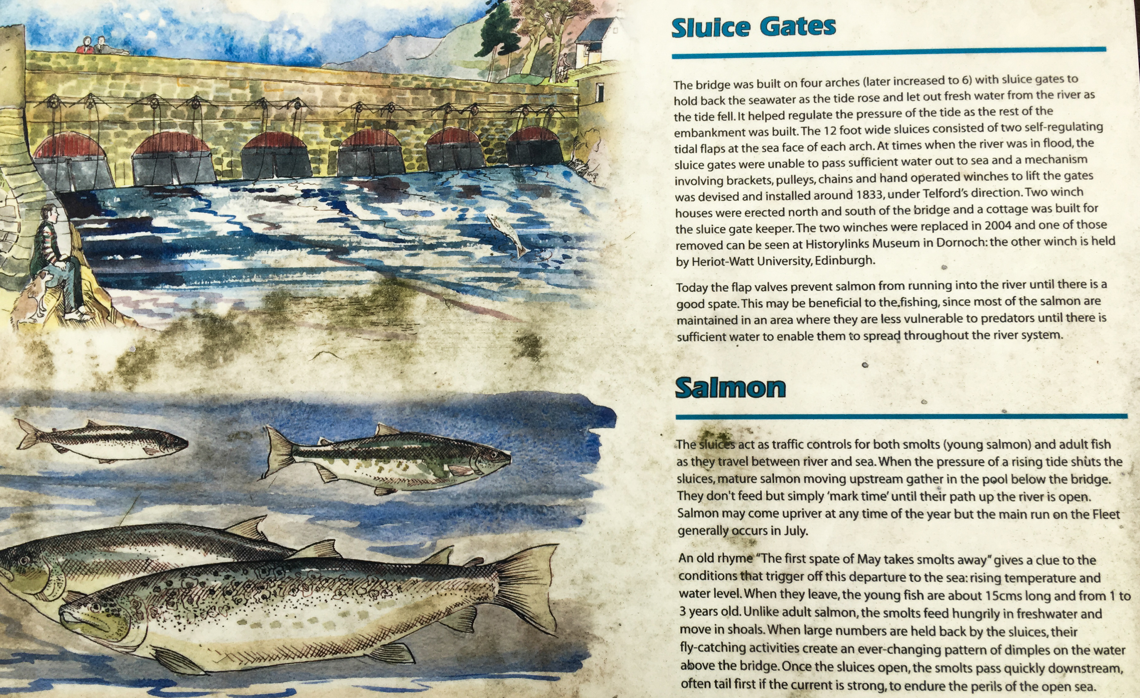 Und: das Sluice Gate. Ein altes Wehr, gebaut für den Lachsaufstieg.
