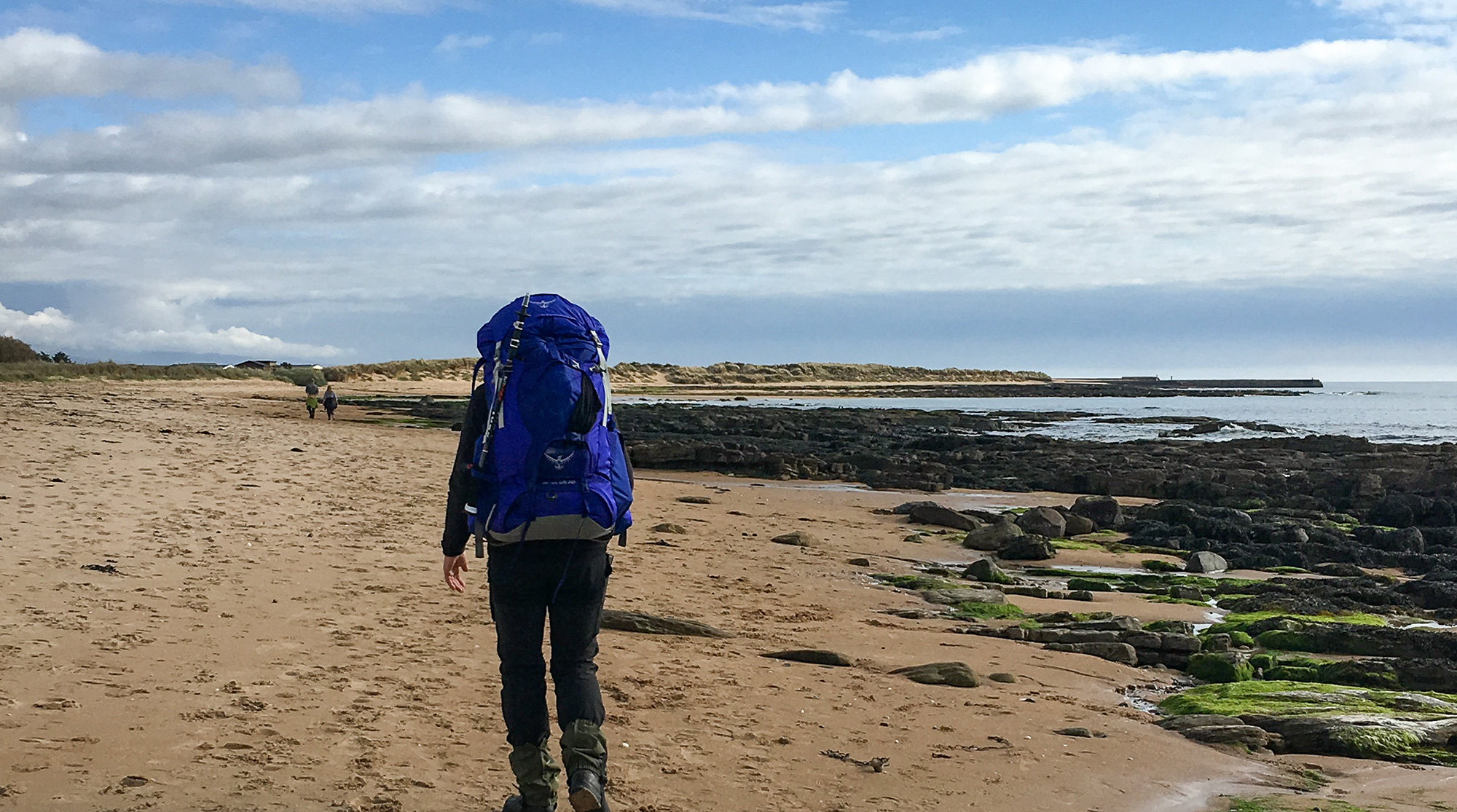 Über einen breiten Grasweg und stellenweise direkt am Strand entlang geht es bis nach Embo.
