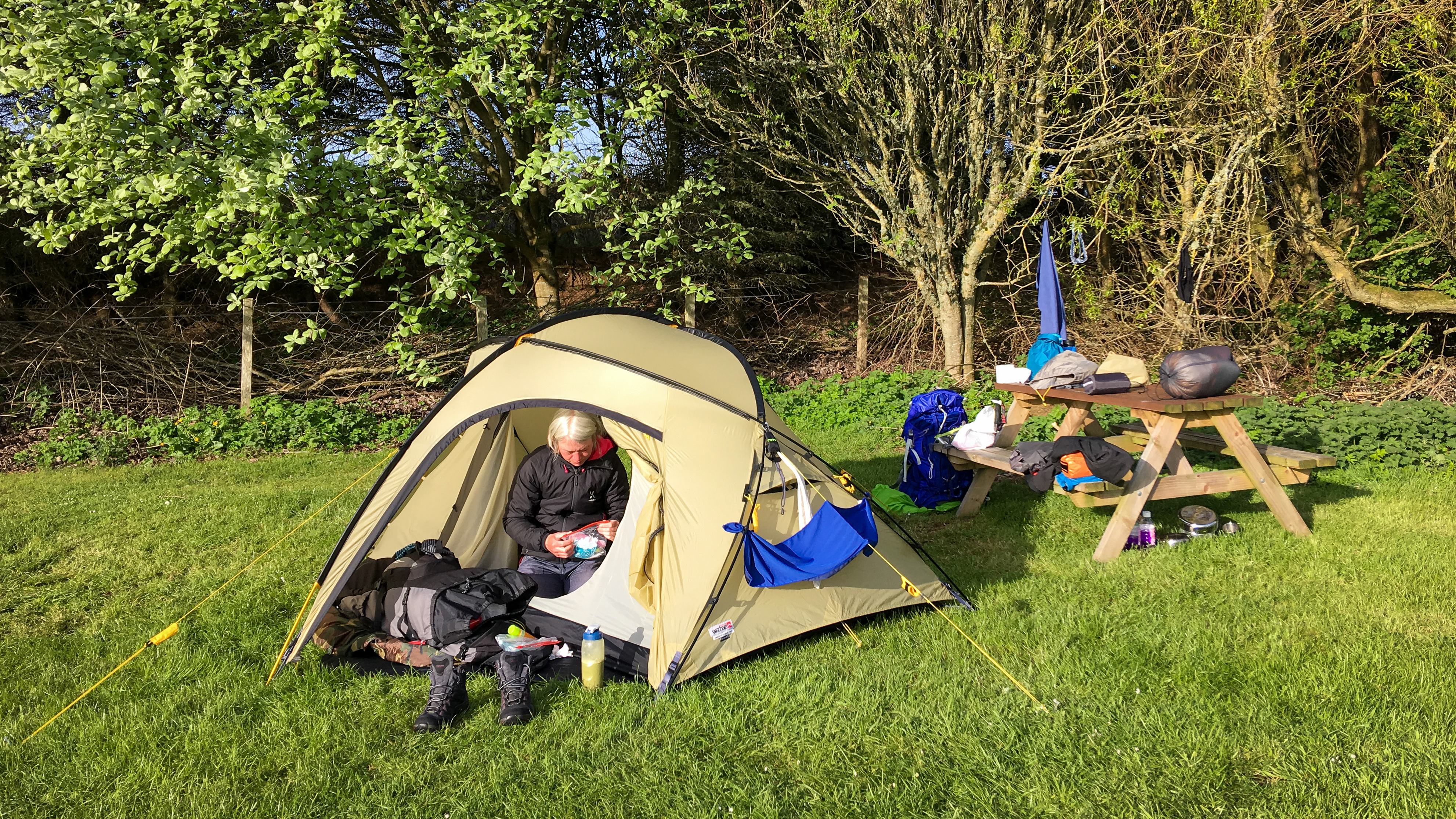 und draußen wartet unser windstabiles Kuppelzelt.