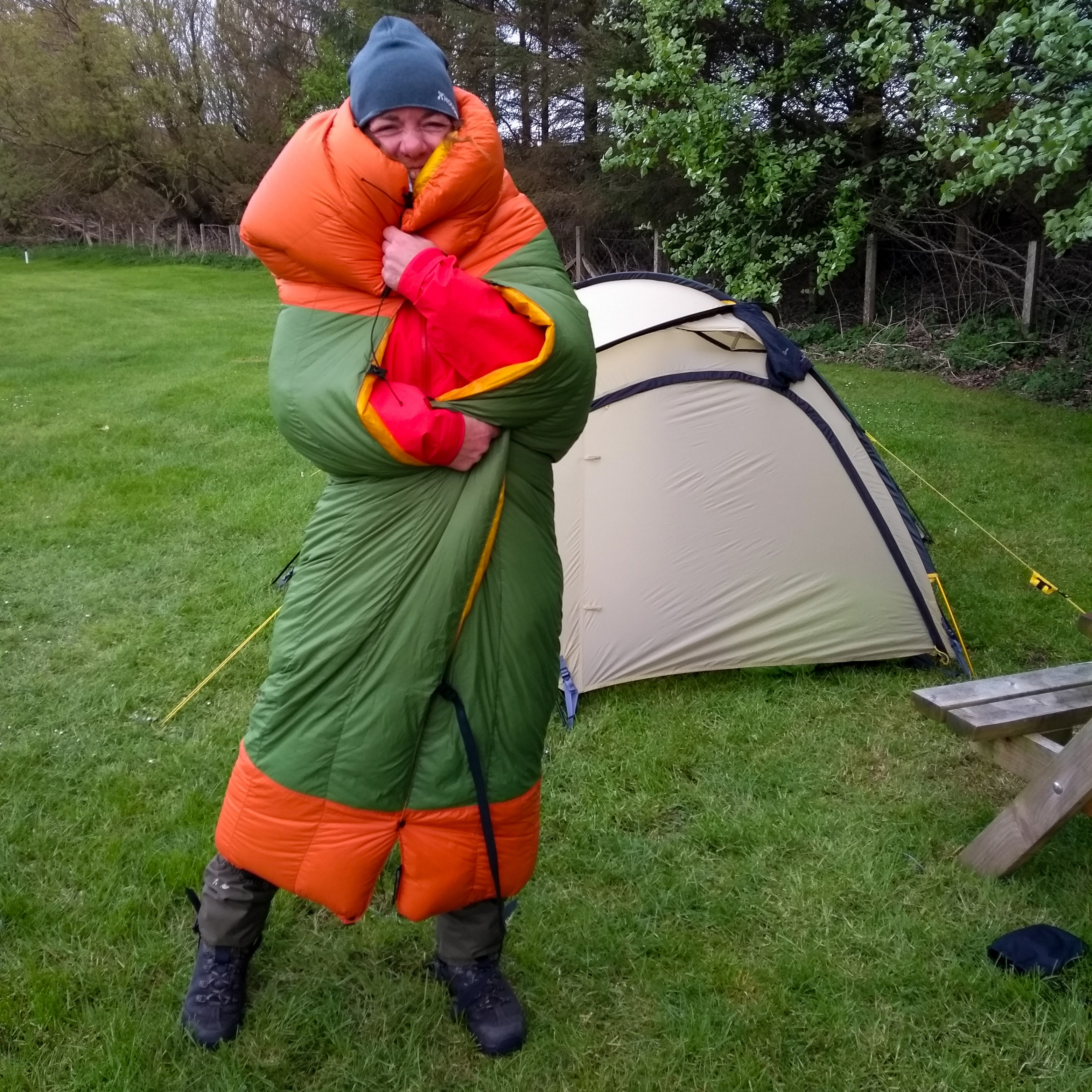 Also erstmal kräftig ans Außenzelt klopfen,
