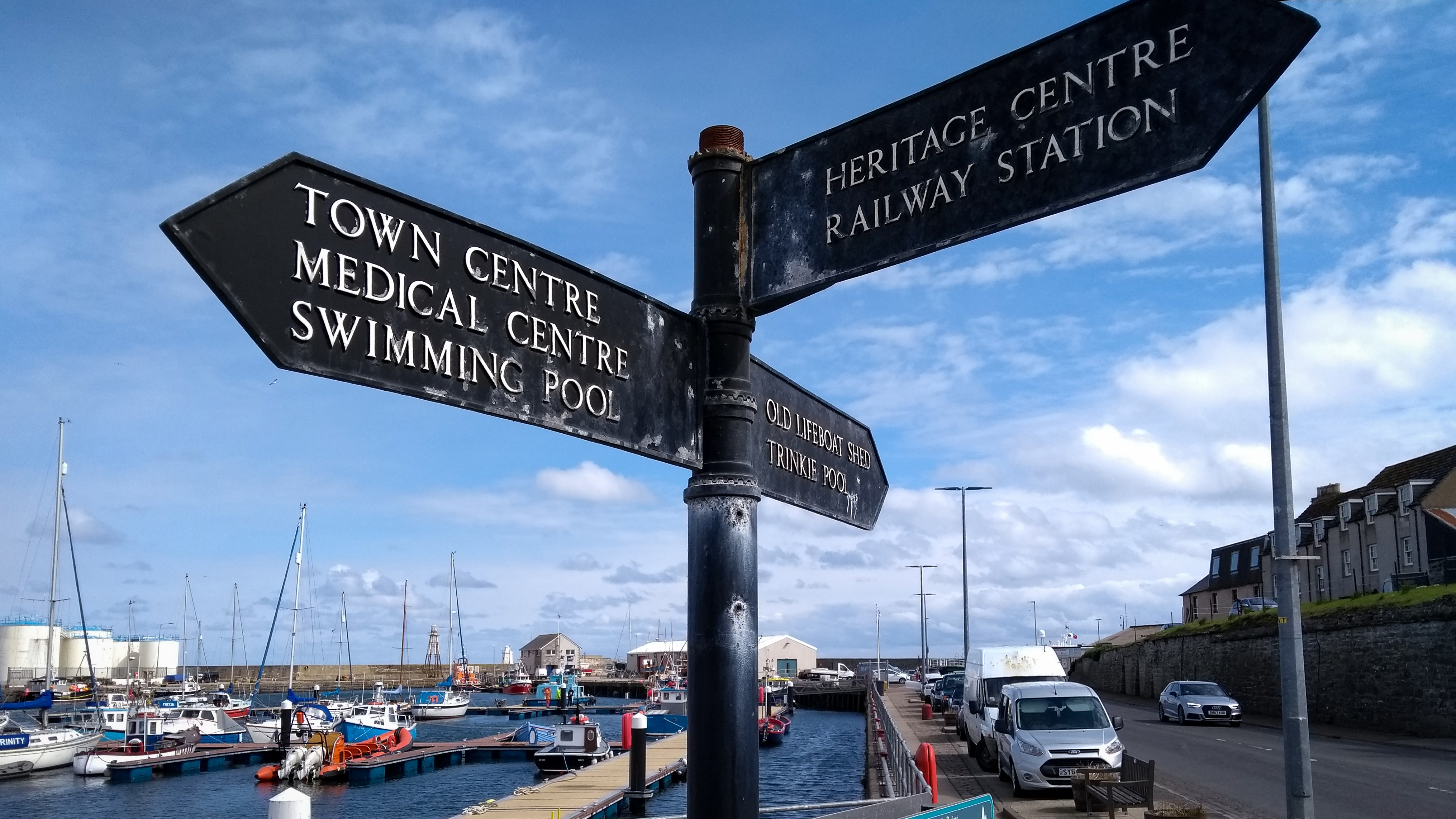 die letzten Meter führen über die Straße bis hinunter zum Hafen von Wick.