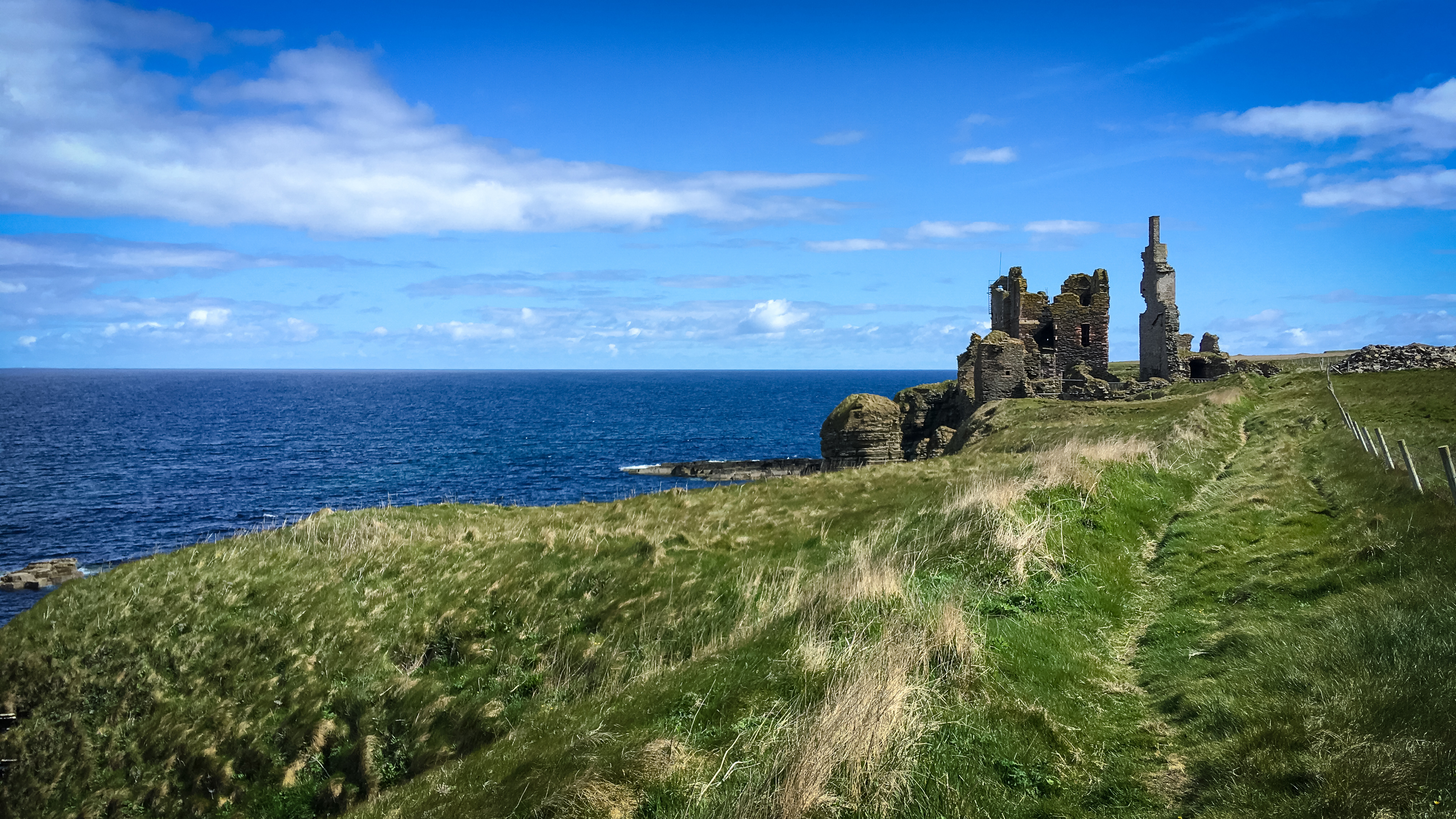 Hier folgt der Weg den Touristen zum Castle Sinclair und danach ist der Weg breit und gut begehbar bis etwa 1 km vor Ackergillshore. Man geht oberhalb des Strandes über Wiesen bis zum Hafen, folgt im Dörfchen der Straße landeinwärts und biegt nach dem letzten Haus wieder auf einen Weg an einem Spielplatz vorbei und steuert dann direkt auf das Ackergill Tower Gebäude zu, das man meerseitig umgeht. Die folgende Steinmauer überquert man mit Hilfe einer Holztreppe und geht ein Stück innen an dieser entlang, um sie am Ende wieder zu überqueren.