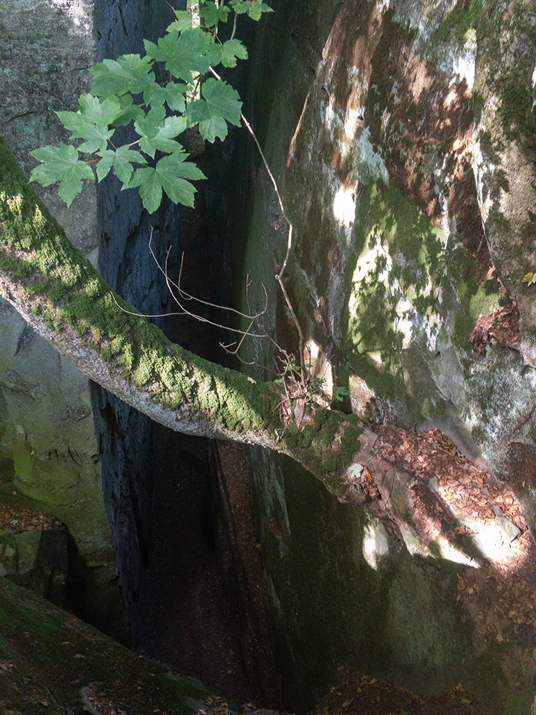 Hier sollen früher die Wölfe Zuflucht gefunden haben. Sicher war die enge Schlucht damals noch ohne Steintreppen für die Wanderer und somit für Menschen nicht begehbar.