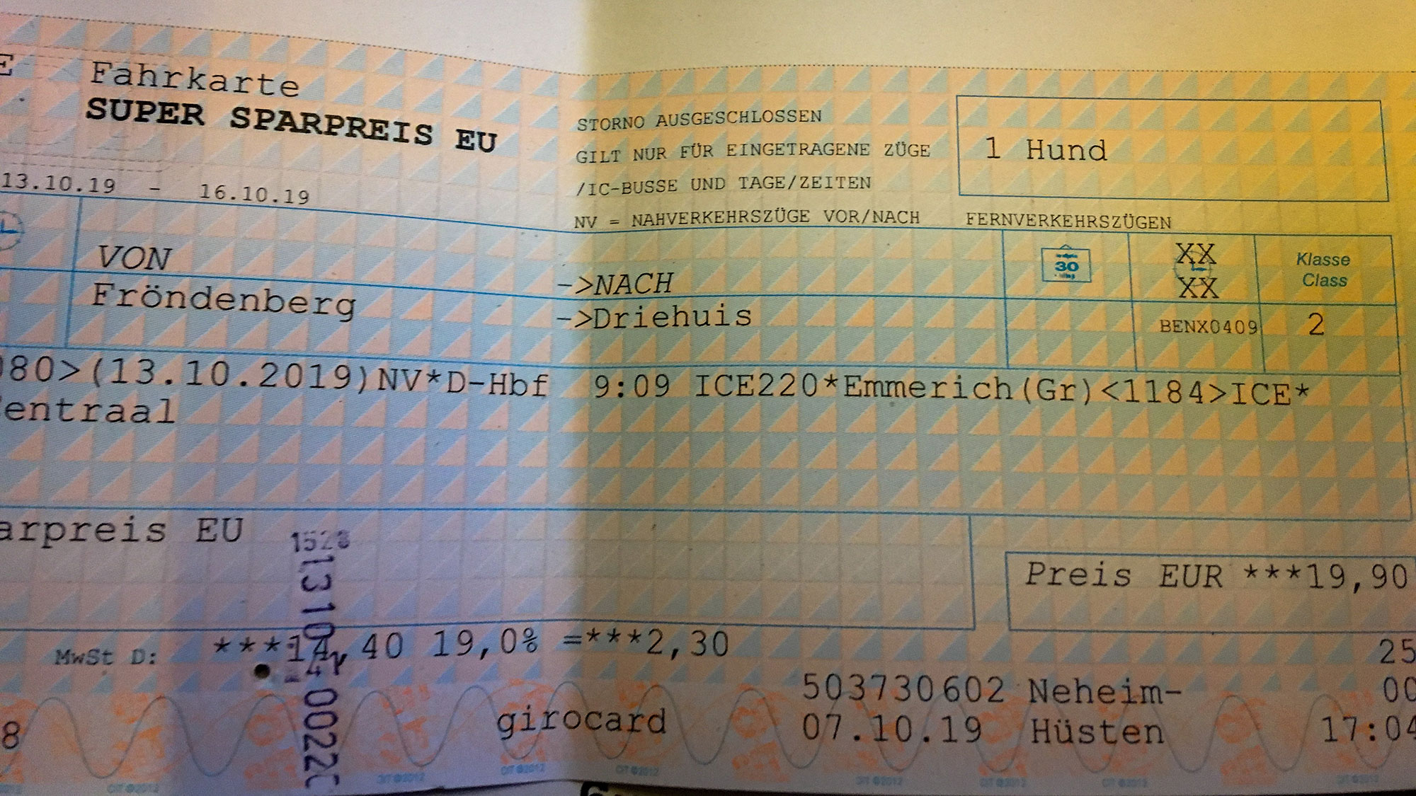 Es ist fast 19 Uhr, und hinter uns liegt ein langer, fast verschlafener Tag, weil ich den Wecker mal wieder überhört habe. Zum Glück wurde ich um 5:30 von Volker geweckt, und obwohl es Sonntag ist sind meine lieben Mieter aufgestanden, um mir alles Gute auf dem Weg zu wünschen. Kaffee kochen, waschen, anziehen und los ging es mit dem ach so schweren Rucksack per Auto zum nächsten Bahnhof in Fröndenberg.