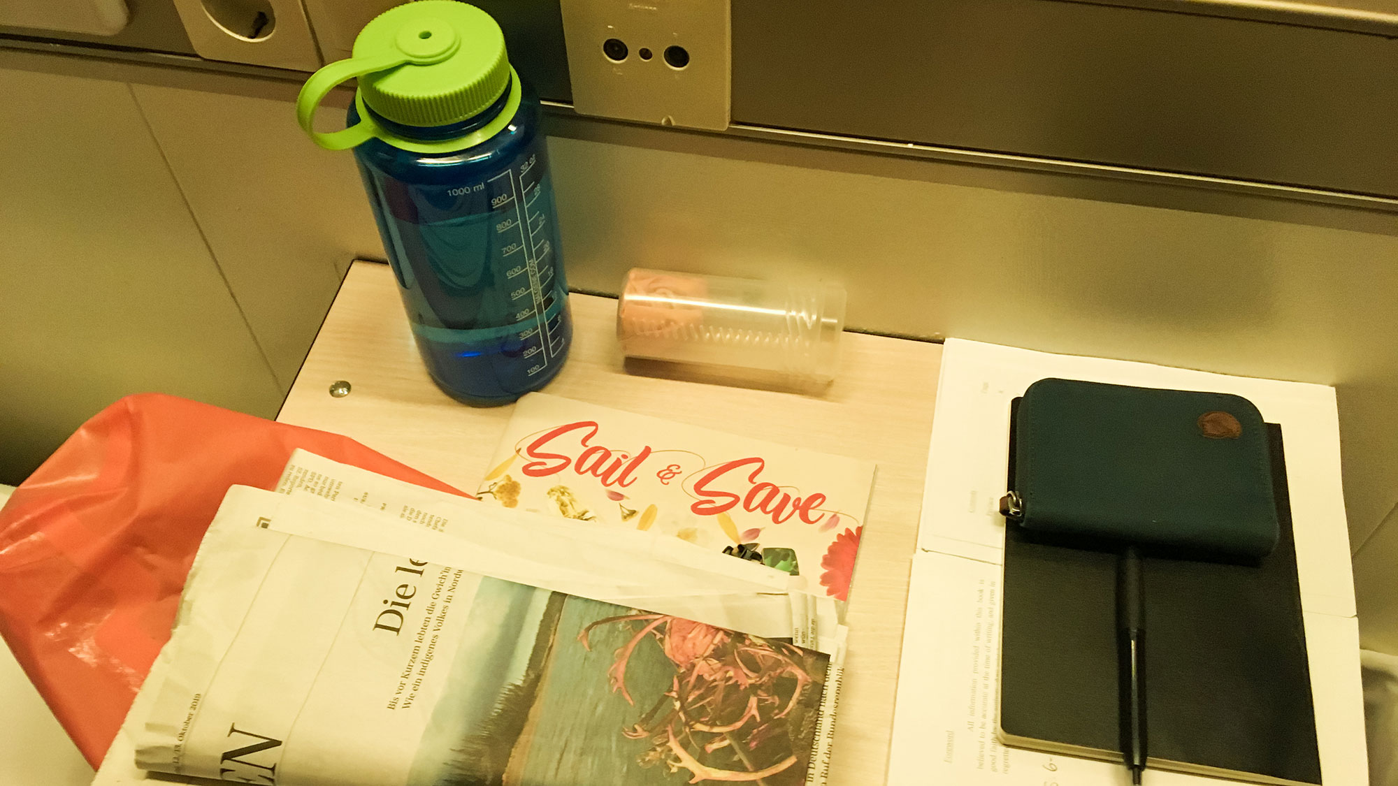 Jetzt sind wir wieder in unserer Kabine, nebenan bellt ein Hund, Mozart liegt zu meinen Füßen und ich schreibe in mein Tagebuch. Um 8 gibt es Abendessen. Den Luxus gönne ich mir. Schlappe 20€ für Abendessen und Frühstück beim Buchen des Tickets, da konnte ich nicht wiedersehen!