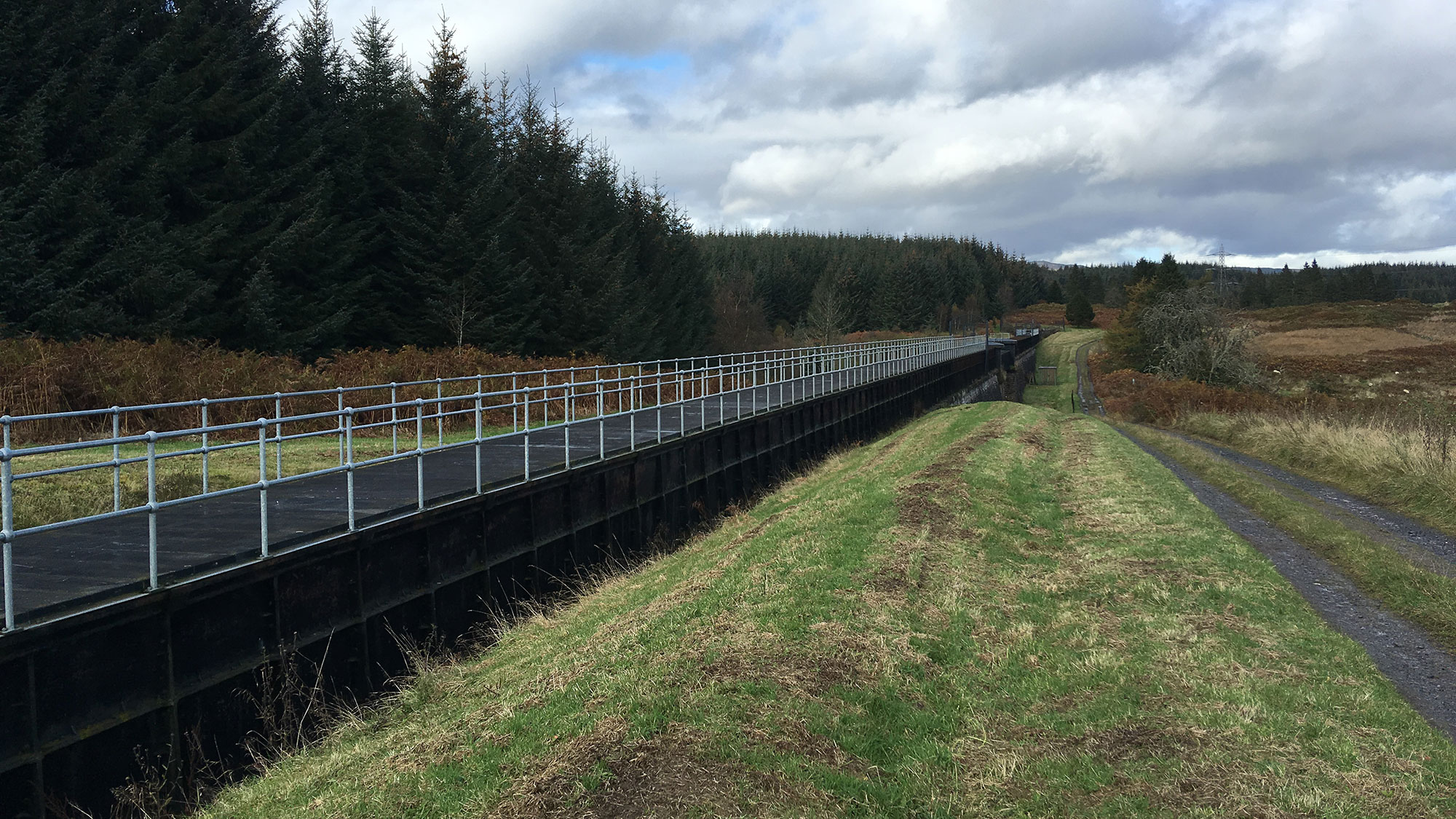 Etwas enttäuschend wird der Weg, nachdem wir im Tal angekommen abbiegen müssen. Bisher hat mich der Asphalt auf der Strecke seit Drymen nicht gestört, aber was jetzt kommt ist echt etwas öde, und die Straße ist auch nicht so schön wie vorher. Okay, die Bauten und Konstruktionen der Wasserleitung sind beeindruckend, aber der Weg ist ansonsten langweilig. Lediglich die Ausblicke Richtung Gartmore heitern auf. Irgendwie kommt mir dieses kurze Stück endlos vor.
