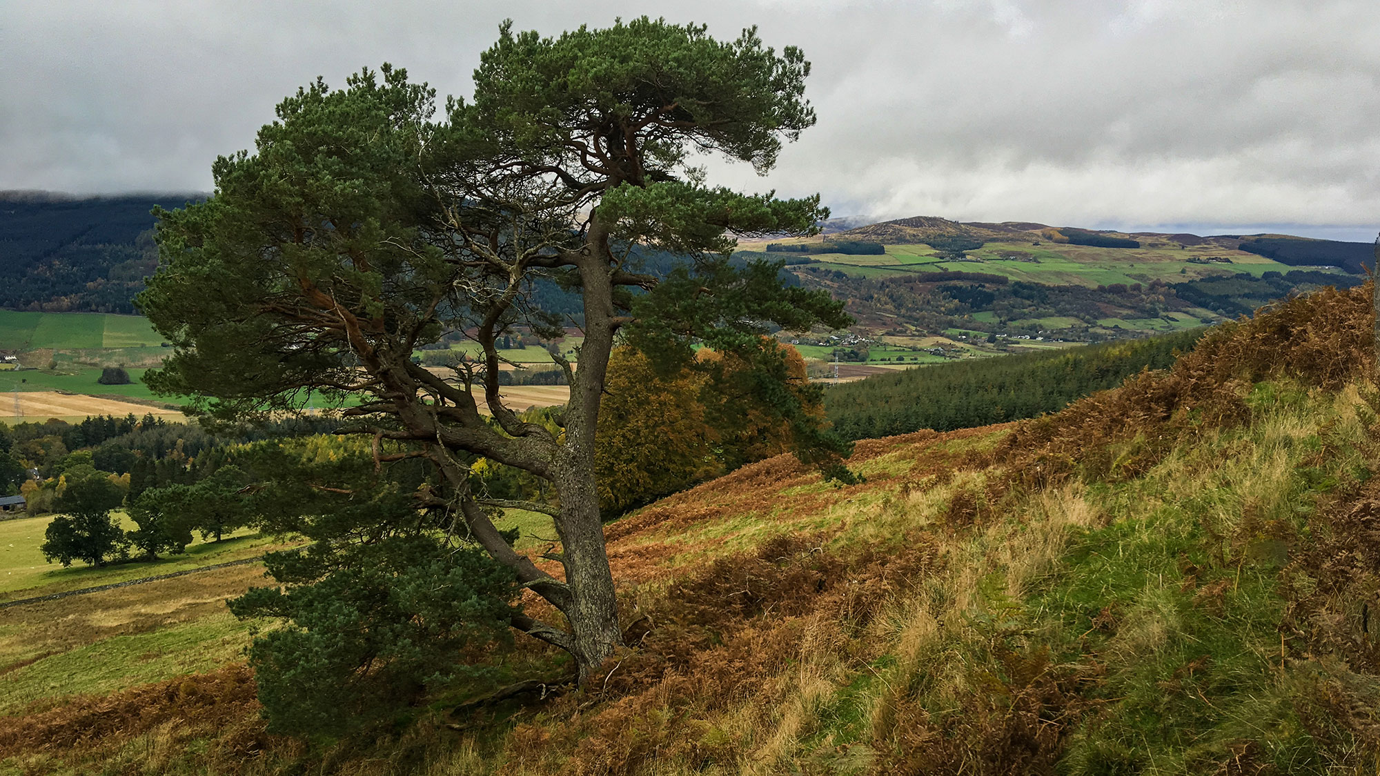 Als wir uns Aberfeldy nähern und der Blick über die Landschaft gleiten kann, wird mir bewußt, dass ich mein blaues Monster auf dem Rücken kaum noch wahrnehme. Freude kommt auf, auch weil am Wegesrand immer wieder vereinzelt Scottish Pines stehen und wir erneut den Schafen begegnen.