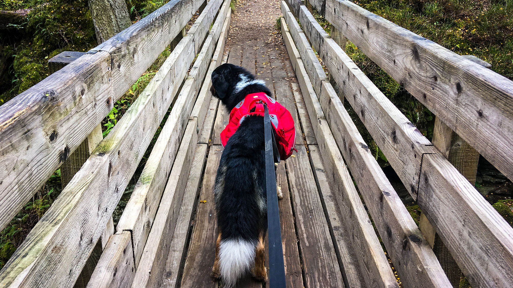 Es geht über viele Brücken mit darunter tosendem Wasser und immer wieder tauchen kleine Wasserfälle an den Flanken auf. Am Schönsten sind aber die Farben des bunten Herbstwaldes in allen Schattierungen von gelb, über rot zu grün und den bereits braunen Blättern auf dem Boden. Geländer schützen den Wanderer vor einem Absturz in den Abgrund. Ein toller Weg für Kinder.