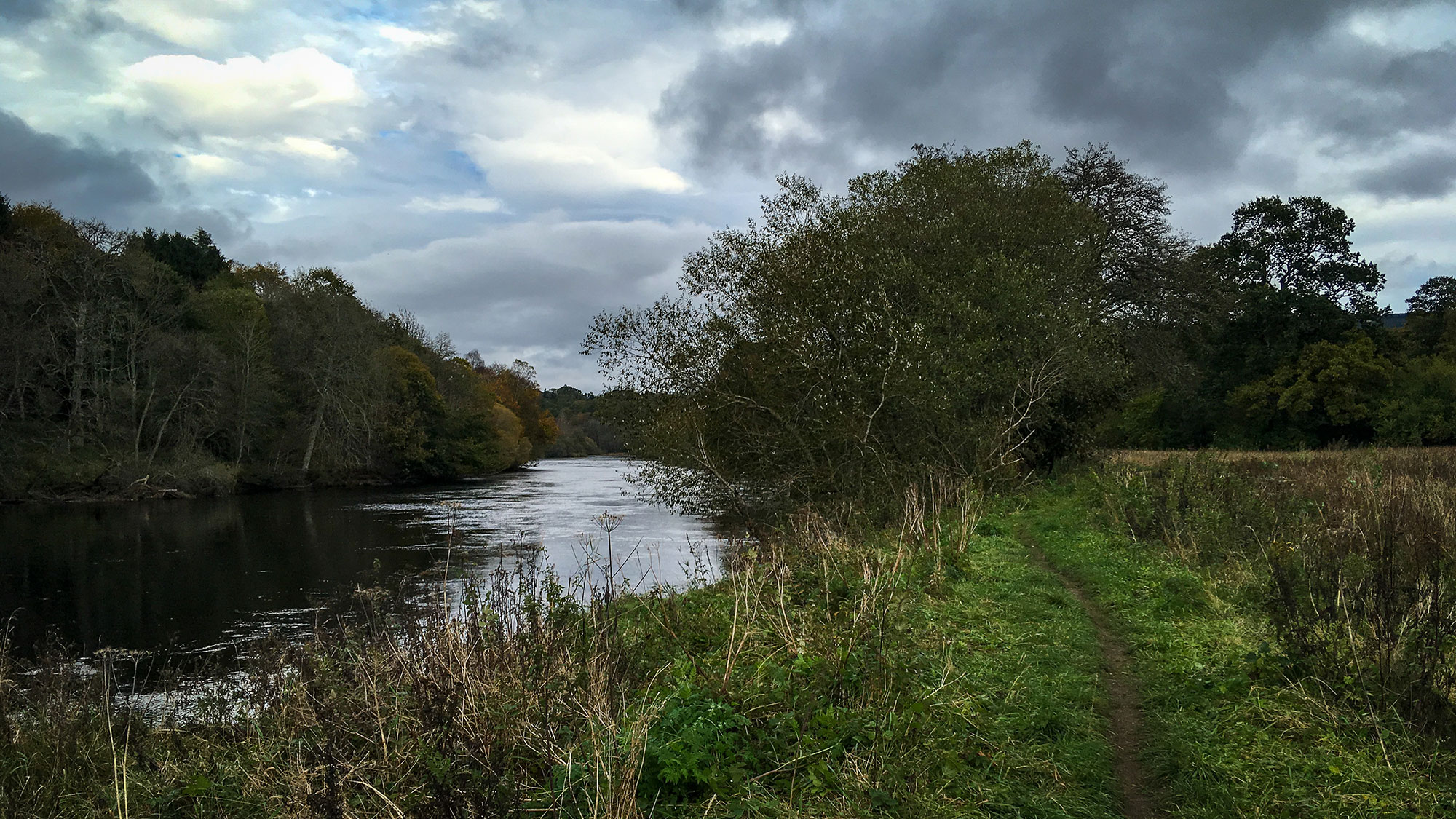 Schon nach wenigen Schritten flattert eine Gruppe Perlhühner mit diesem typischen Kreischton vom Boden auf und flattert unbeholfen ein paar Meter weiter zur Landung. So geht das die ganze Zeit bis wir das Ufer des ruhig dahinfließenden Tay erreichen. Die komplette Wiese ist hier bevölkert mit hunderten von Perlhühnern. Auf der anderen Uferseite sieht man vereinzelt Häuser zwischendrin Bäumen und vereinzelt scheint die Sonne zwischen den Wolken hindurch. Nachmittagsstimmung. Es läuft sich herrlich leicht auf dem Grasboden.