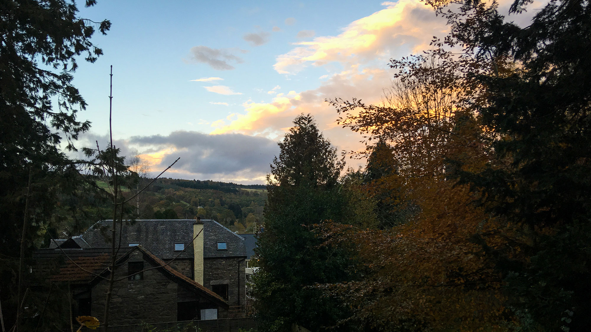 Kurz vor Grandtully habe ich wieder freie Sicht auf Landschaft und Weiden und die weißen Wolken bekommen ihre typische rosa – orange Färbung von der sich langsam am Horizont verabschiedenden Sonne. Etwas Wehmut kommt auf, denn dies ist unser letzter, richtiger Wandertag, denn morgen müssen wir nur noch kurz über einen Berg, dann sind wir bereits am Ziel.