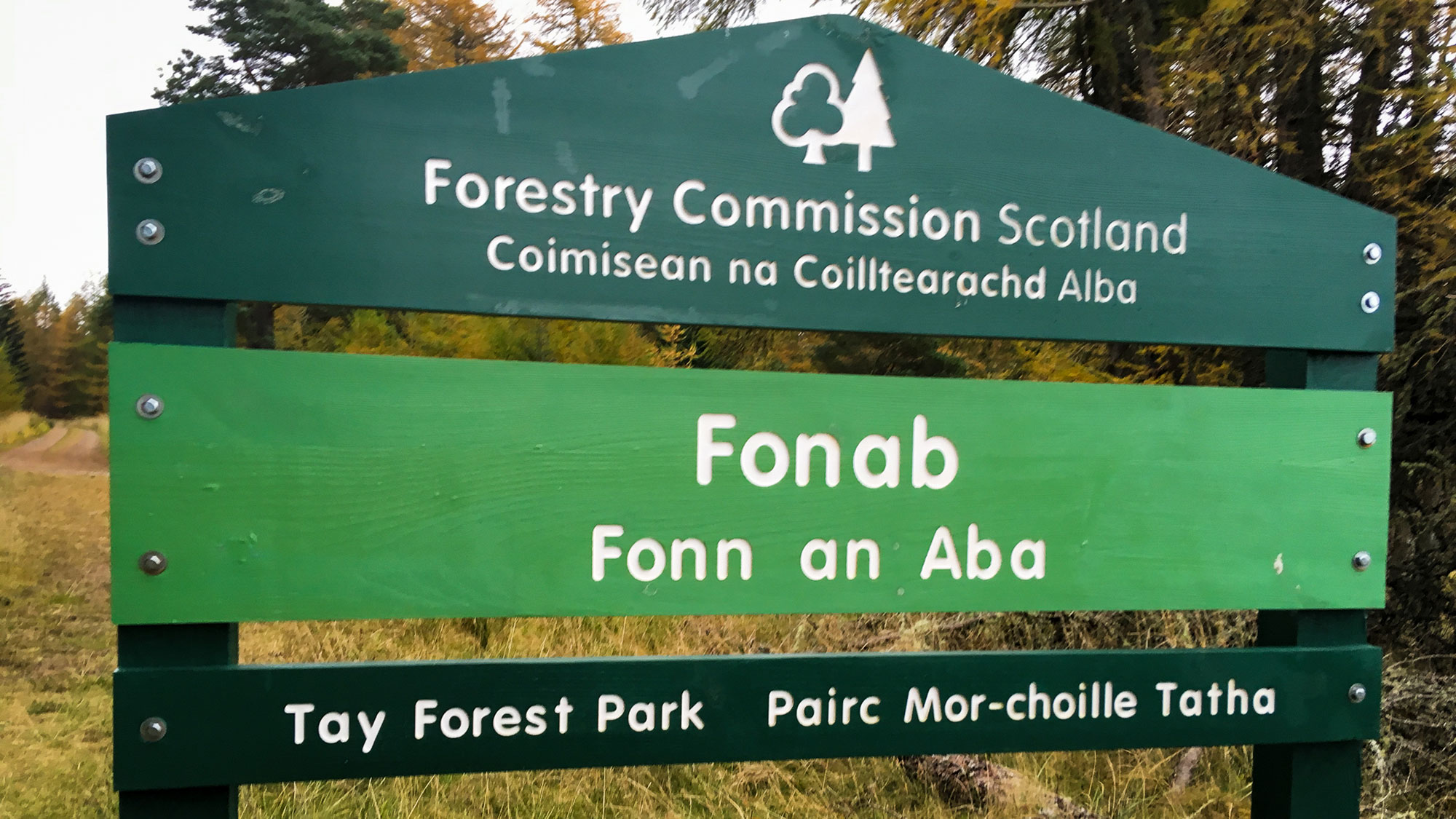 Irgendwann wurde es zu kalt und wir sind weiter durch den Tay Forest Park nach Pitlochry hinuntergezogen. Über breite Forststraßen, aber auch manchmal über Waldpfade. Danach zwischen Weiden und Farmland, wir erreichen die stark befahrene A9 und müssen etwas warten bis sich eine ausreichende Lücke zwischen den Fahrzeugen auftut, um wir schnell hinüber rennen zu können.