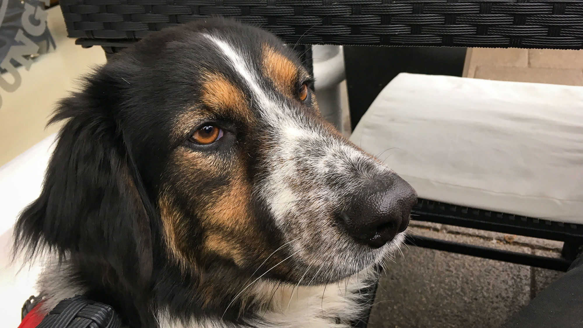 Am nächsten Gate ist alles vorbei, wir kehren zurück in den Wald. Mir ist direkt nach einer Pause und wir hocken uns in das Gras unter einer Fichte, um uns nieselt es leicht, und dann flossen die Tränen. In diesem Moment ist die Wanderung für mich zu Ende. Wie auch auf dem JOG Trail überkommt mich dieses Gefühl ein kurzes Stück vor dem eigentlichen Ziel. Ich habe es geschafft! Mozart hat es auch geschafft, mit seinem roten Rucksack. Wir sind den Weg gemeinsam gegangen und haben so viel erlebt und gesehen. Es hat uns mehr aneinandergebunden, wir waren uns nah, ohne Worte haben wir einfach erlebt. Kommandos habe ich kaum gebraucht. Jetzt geht es zurück in den Alltag, was von unserer Symbiose können wir mitnehmen, behalten?