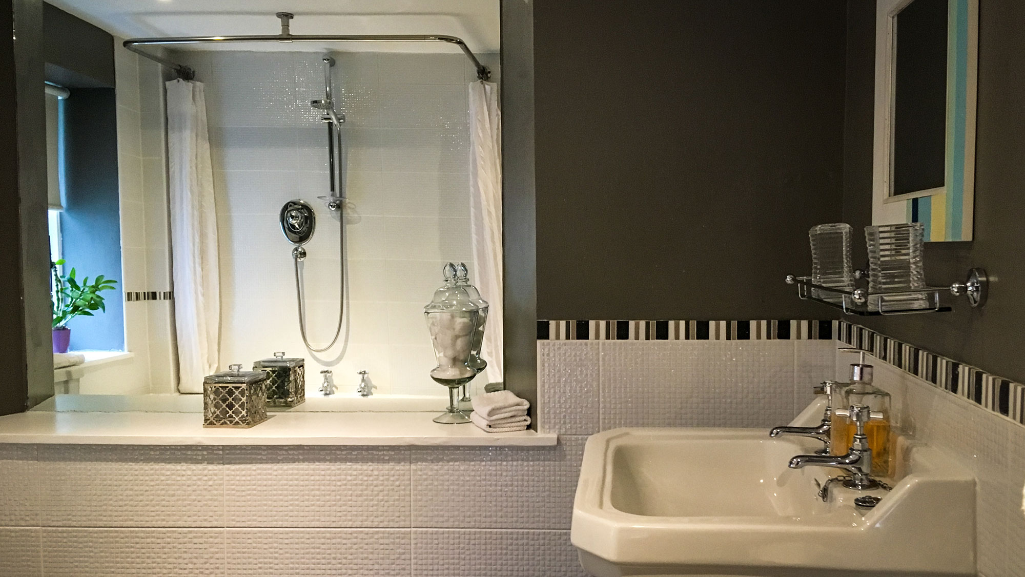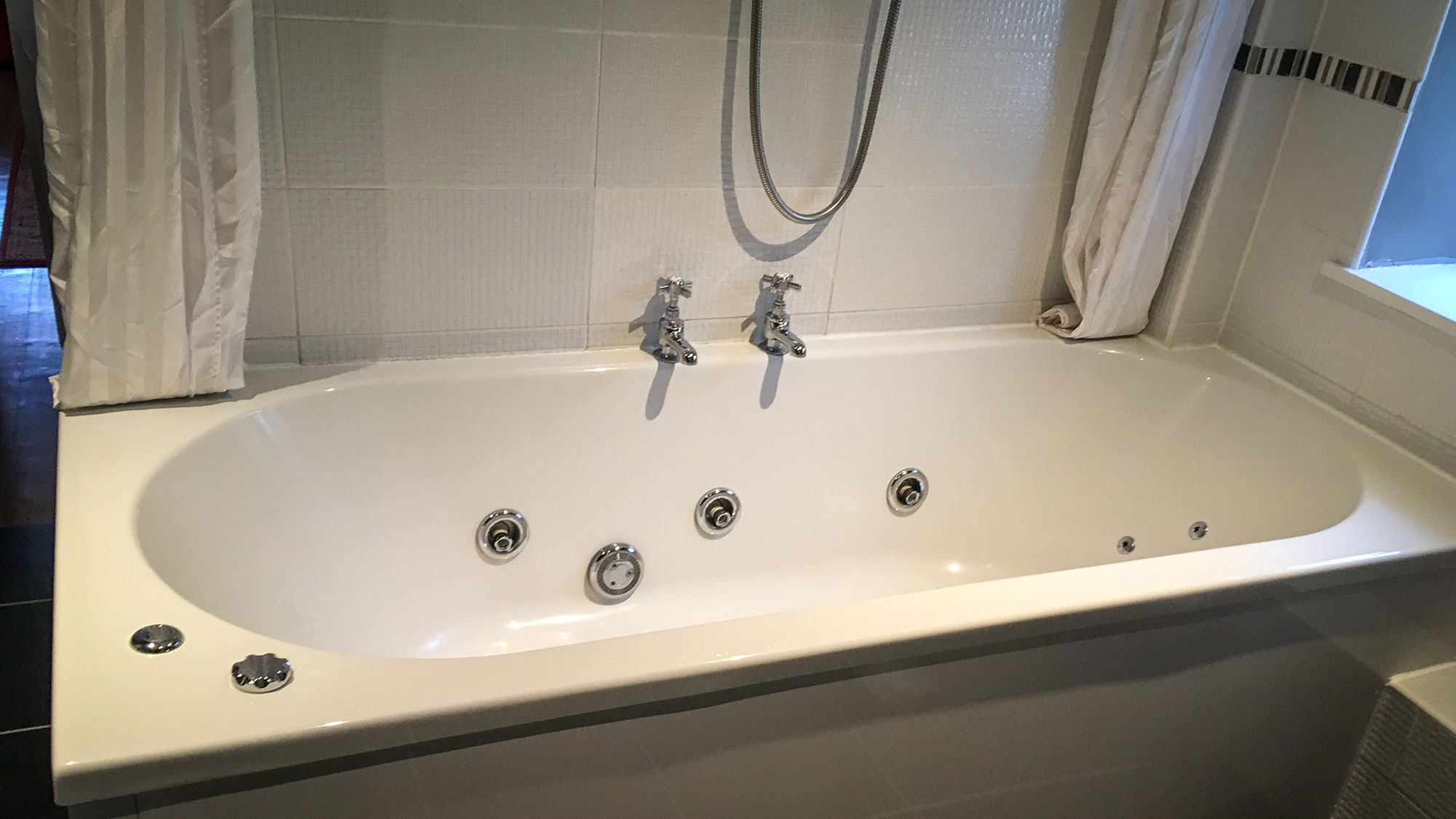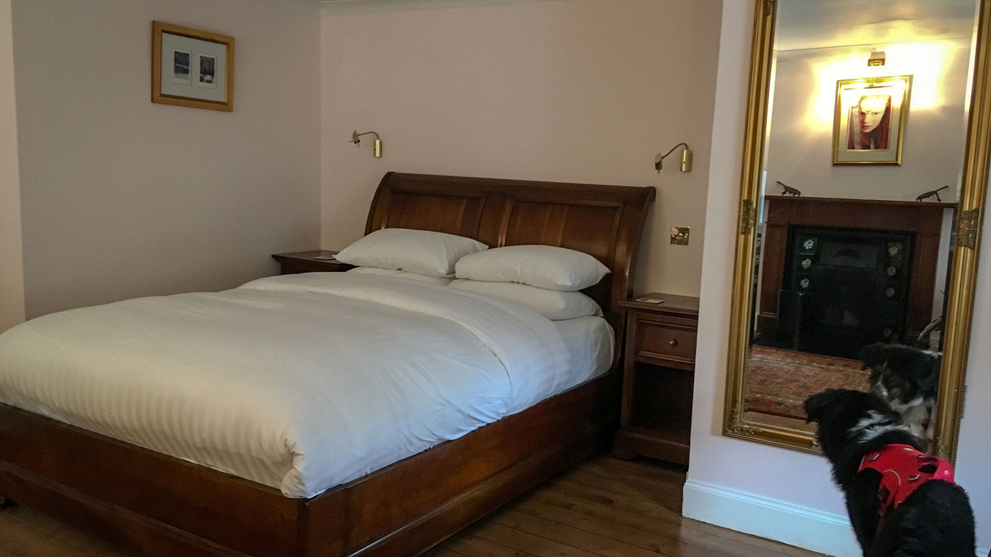 Einen Moment lang fühle ich mich deplatziert mit meinem Equipment und meiner verdreckten, stinkenden Erscheinung in dem feinen, mit Glas überdachten Restaurantbereich. Aber niemanden scheint das zu stören, und als mir unser Zimmer gezeigt wird falle ich fast um! Wahnsinn und absolut British! Ein schwarzes Ledersofa, Holzdielen, ein Himmelbett für Königinnen, und eine eigene Badewanne mit weichen Handtüchern und einem flauschigen Bademantel.