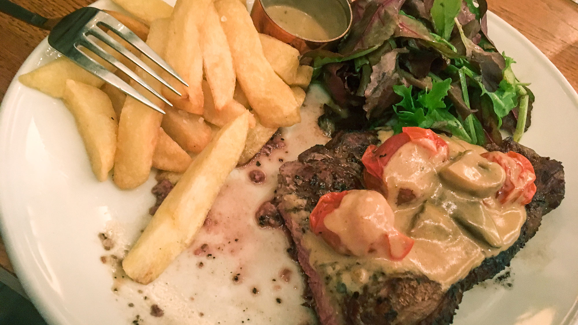 Ja Fleisch, aber was hier auf den Teller kommt ist das beste Fleisch, sprich von der Wiese und nicht im Massenschlachthaus massakriert. Das Steak war weich und saftig, es war saulecker! Wer schon mehr von mir gelesen hat wird wissen, dass ich zu Hause nie Fleisch oder Milchprodukte esse. 100% vegan ist es aber nicht, denn ab und zu esse ich auch einmal ein Stück Käse zum Brot.