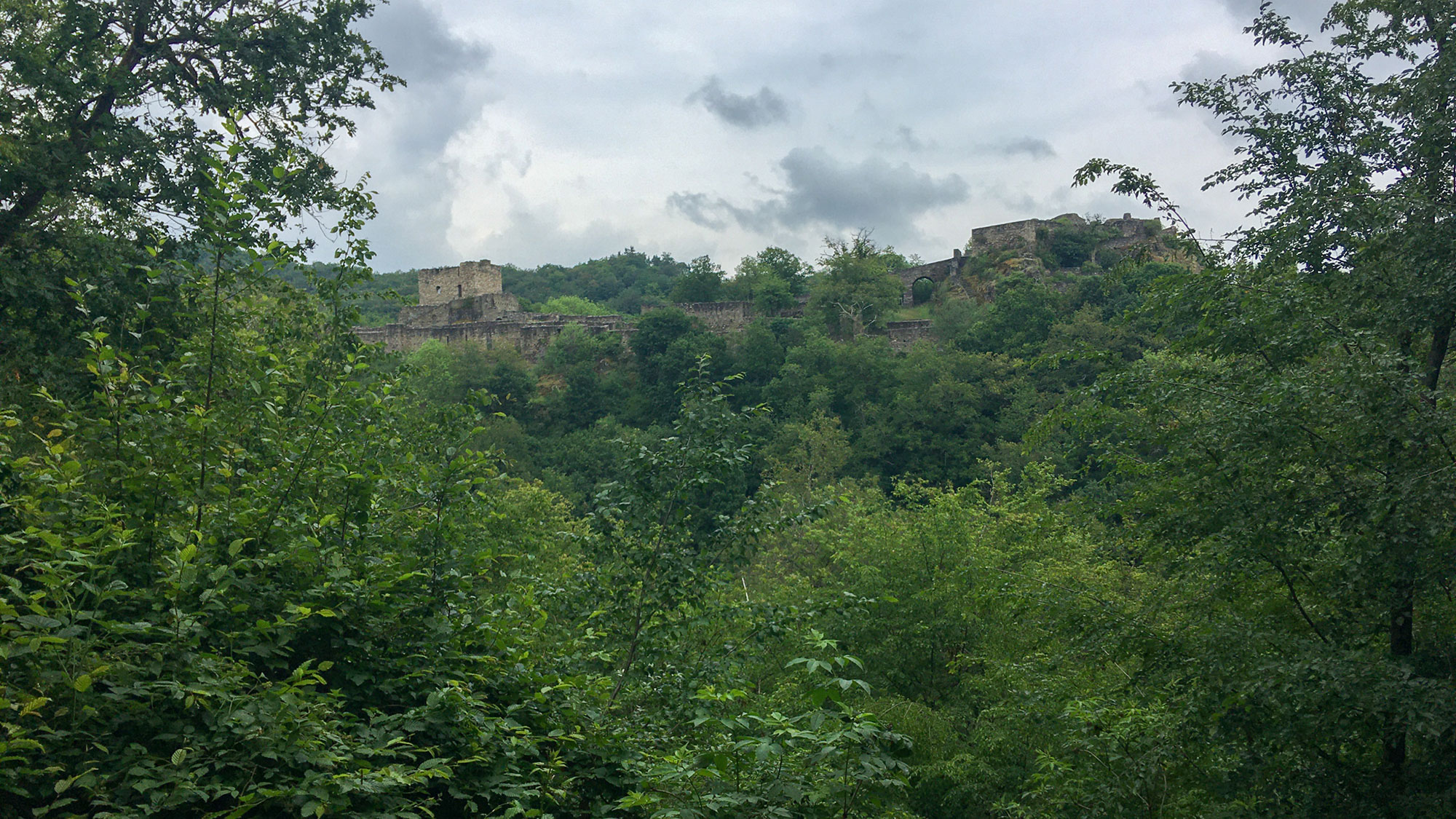 Der Weg wird wieder etwas breiter und an einer Kehre habe ich einen ersten Blick auf die Anlage der Schmidtburg (Das Trekkingcamp ist anscheinend in diesem Jahr nicht geöffnet), die in dem nun engen, sich windenden Tal vor uns auftaucht. Fotos werden heute nicht wirklich gut, das Licht lädt mich gar nicht zum Fotografieren ein. Vielleicht sollte ich mir doch einmal eine gute, leichte Kamera zulegen, an der man manuelle Einstellungen vornehmen kann. Ich habe einfach meist keine Lust und Zeit Lightroom zu öffnen und damit die Fotos zu machen. Bei mir muss das immer schnell gehen. Handy raus, Kamera antippen, Motiv wählen, maximal noch den Lichtpunkt setzten und das war‘s!