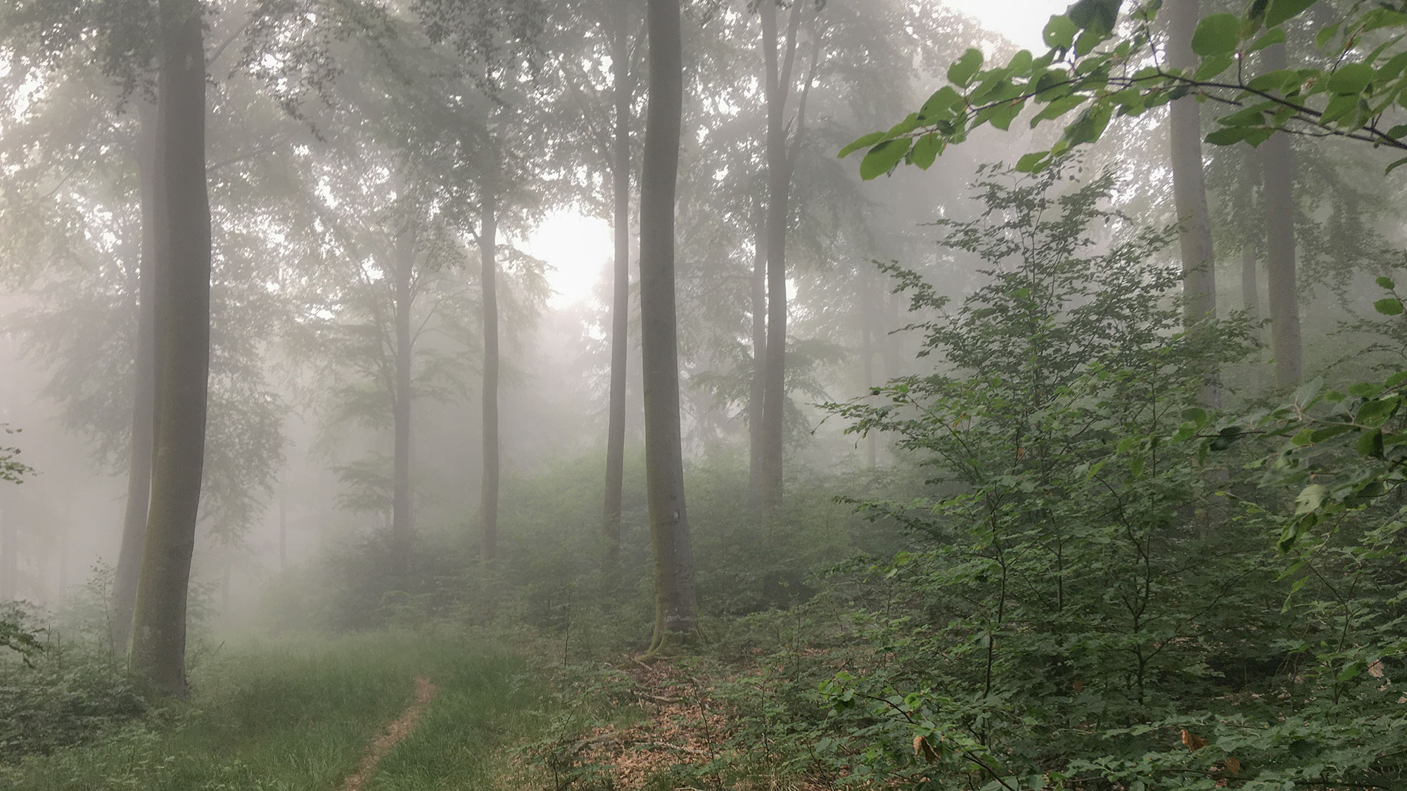 Der Nebel, oder sind wir einfach nur in einer Wolke eingehüllt, verzaubert den Wald, und nur gedämpft klingt die Morgenmusik der Vögel zu uns durch. Es ist absolut phantastisch, unbeschreiblich!