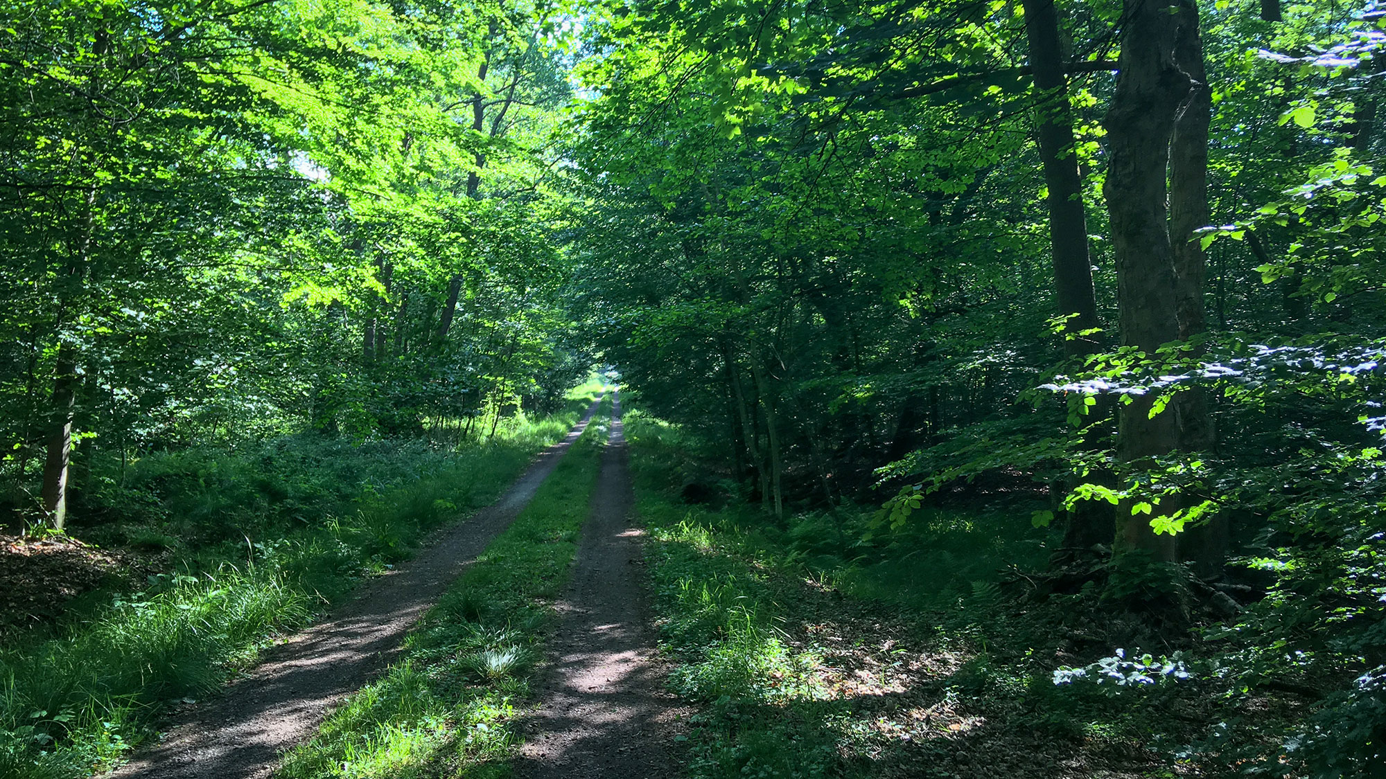 Ein Stück werden wir entlang der Wiese von der Sonne beschienen, und ich bin froh danach wieder im schattigen Wald zu sein, auch wenn der Weg jetzt irgendwie „eingezäunt“ und schnurgerade ist. Doch das Spiel zwischen Licht und Schatten ist herrlich und bald erreichen wir erneut einen Pfad bergauf, folgen ein Stück einer Asphaltstraße und erreichen den Schanzenkopf mit seinen Antennen.