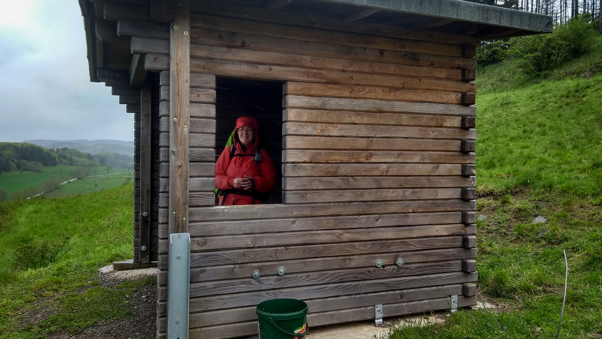 Direkt oberhalb von Welleringhausen steht eine Hütte, die uns Schutz vor dem Wetter bietet, kein Wind! Doch schon nach einer kurzen Rast wird uns kalt und wir ziehen weiter.