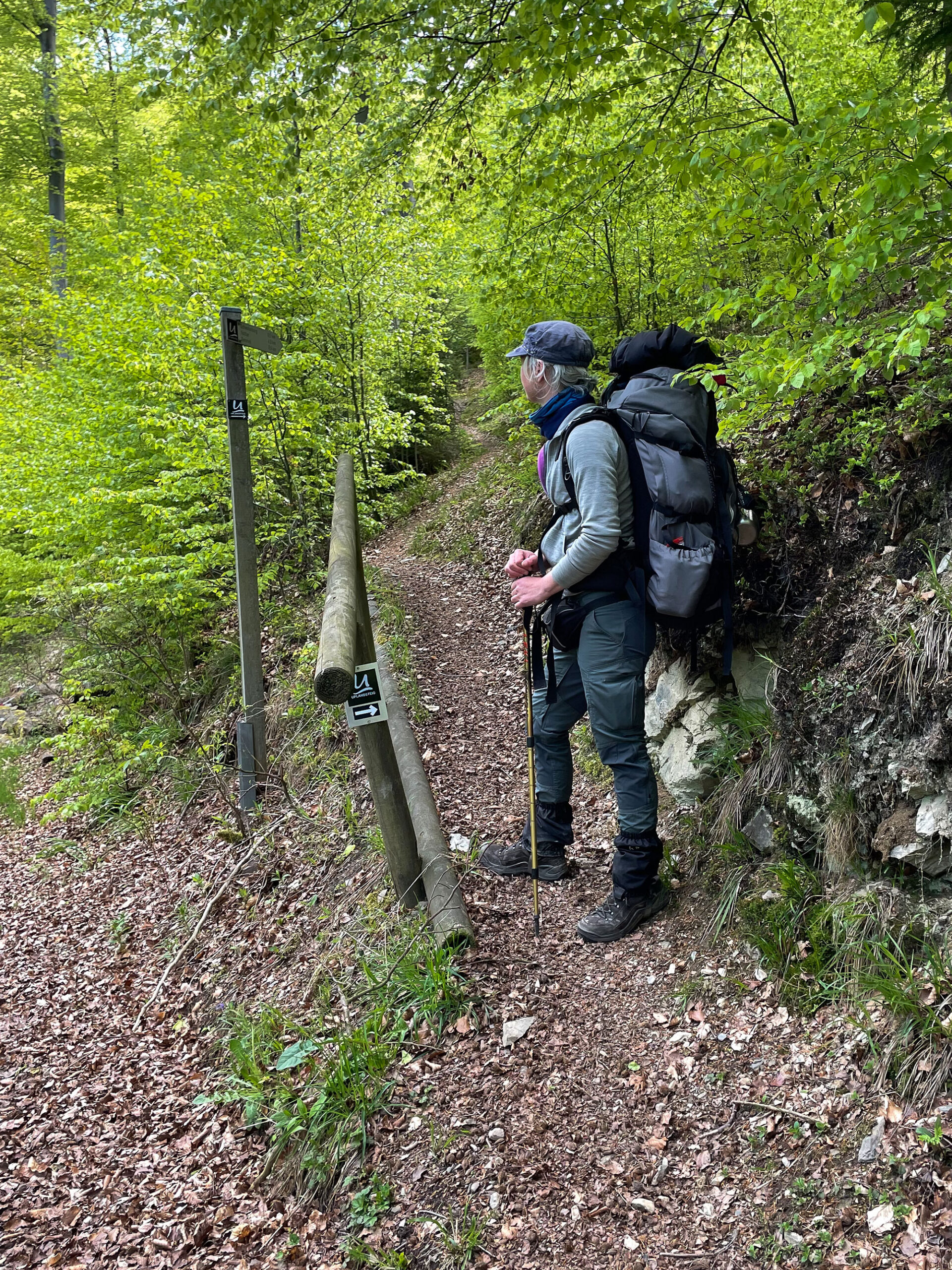 Ich schätze mal 200 Höhenmeter auf etwas mehr als einem Kilometer. Tempo reduzieren und hoch. Trotzdem haben wir eine Verschnaufpause einlegen müssen.