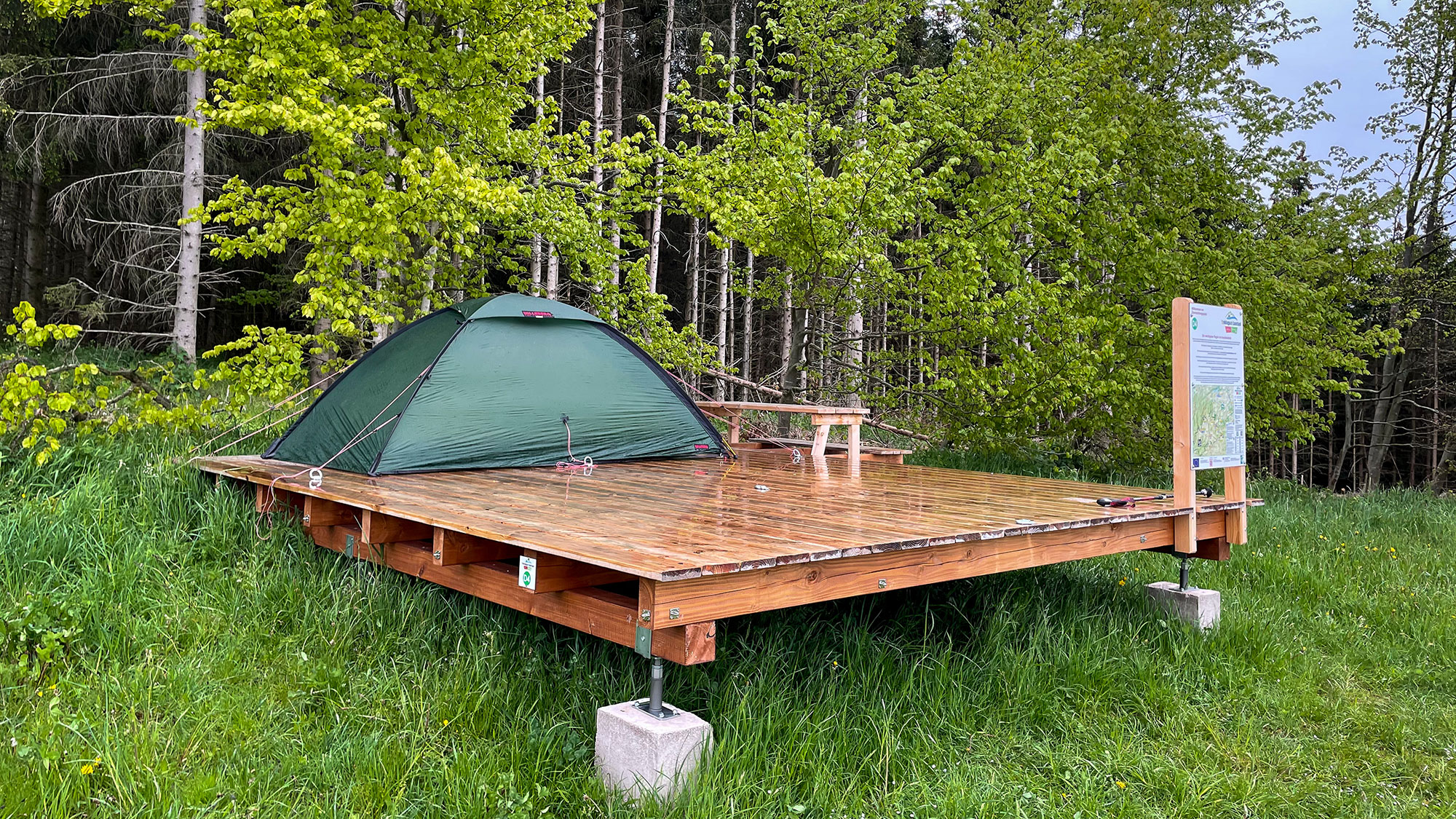 Wärmende Strahlen dringen durch meine Zeltwand und fordern zum Aufstehen auf. Durch die Tannen, die zwischen uns und der verlassenen Sommerrodelbahn stehen, dringen vereinzelte Sonnenstrahlen bis zu uns vor. Es ist kalt, also ist Bewegung angesagt. Das Zelt ist trocken und wird als Erstes abgebaut und verpackt, somit ist das erledigt und mir warm genug für das schnelle Frühstück. Heute geht es für Ju bis zum Wanderparkplatz am Dommel, wo unsere Autos stehen. Für mich geht es danach weiter bis zum Trekkingplatz-Schutzhütte-Strombruch.