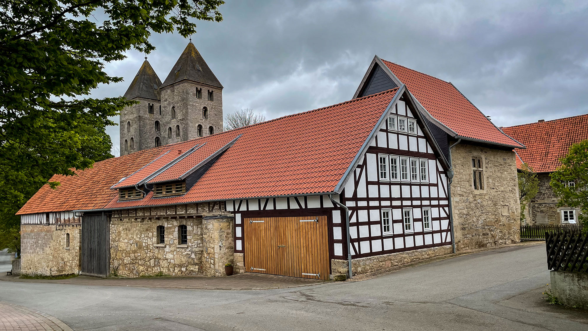 Draußen treffe ich wieder den Postboten, er begrüßt mich wie eine langjährige Bekannte und schickt mich um die nächste Ecke. Um die Ecke stehen Kirche und Gebäuden des Kloster Flechtdorf. Stein und Fachwerk, aber leider alles abgeschlossen wegen Corona.