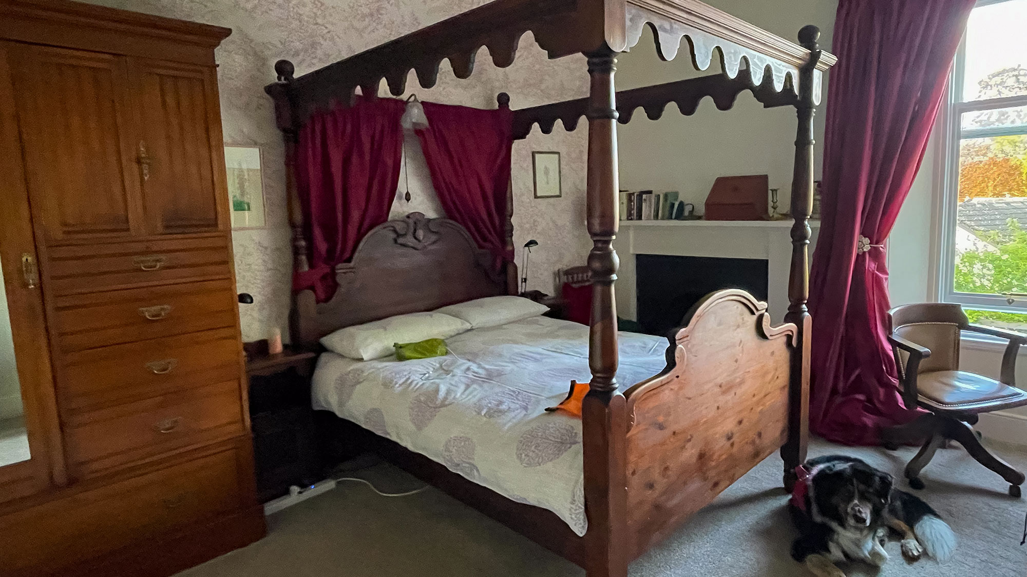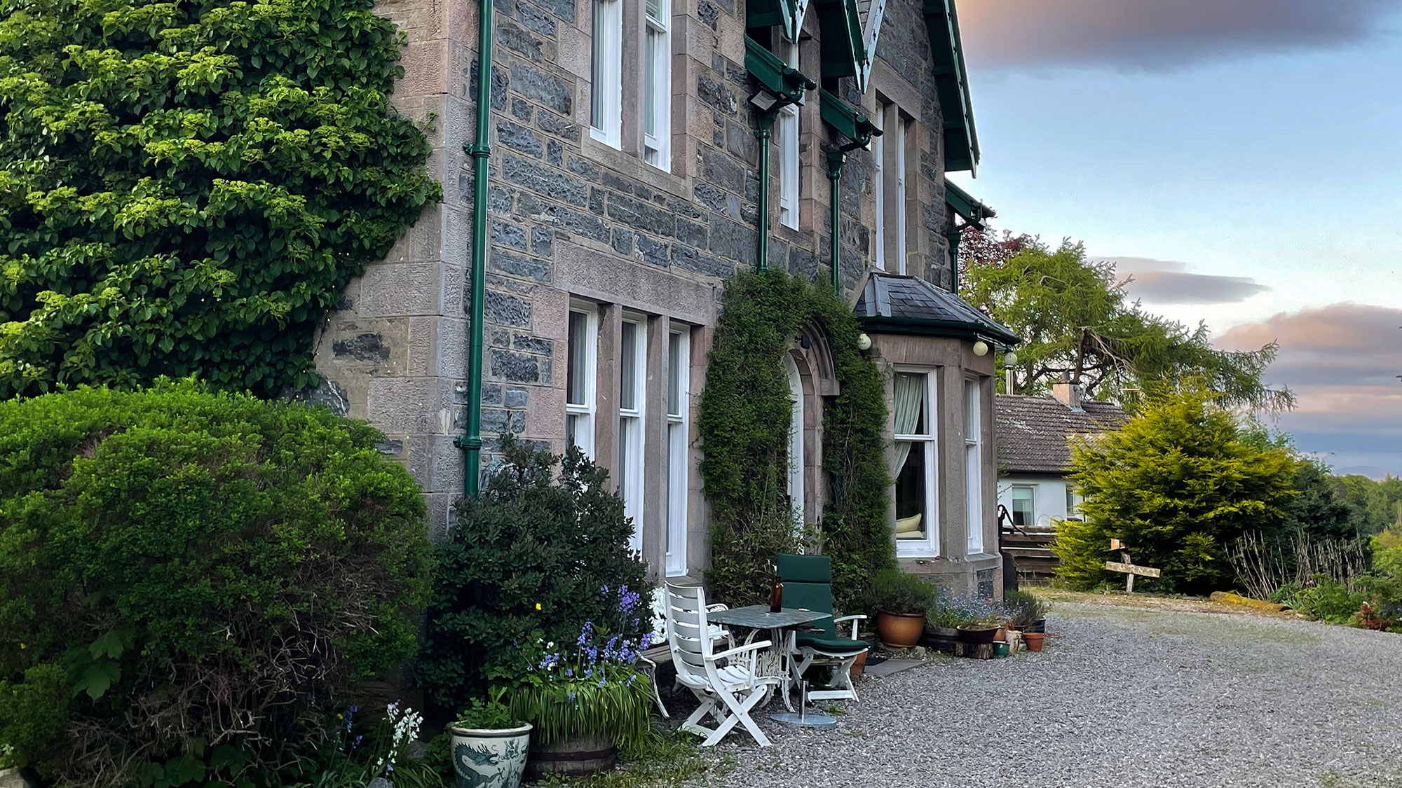Kurz nach 19 Uhr kommen wir in Kingussie an, einem kleinen, feinen Städtchen. Um zu unserem B&B zu gelangen, müssen wir den Berg hinauf, und auch das noch, denn nach der langen Fahrt sind wir beide ziemlich erschöpft. Kurz bevor wir zum Haus abbiegen, kommt uns ein freilaufender Hund entgegen, der uns sogar bis auf das B&B-Grundstück folgt. Ich verscheuche ihn, denn Mozart zeigt mir mit eingezogenem Schwanz, dass er darauf jetzt keine Lust hat. Ehrlich gesagt, ich auch nicht, ich will nur das Bett sehen. Also betreten wir das schöne Haus.