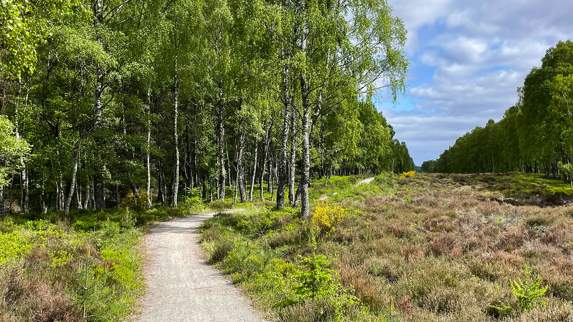 Den Kilometer bis Kincraig legen wir auf einem neu angelegten Wanderweg mit mindestens vier Bänken, manche mit Tisch, zurück. Mindestens vier, denn ich habe nicht von Anfang an mitgezählt. Liebe Leser:innen, falls ihr das mal nachzählen könnt?