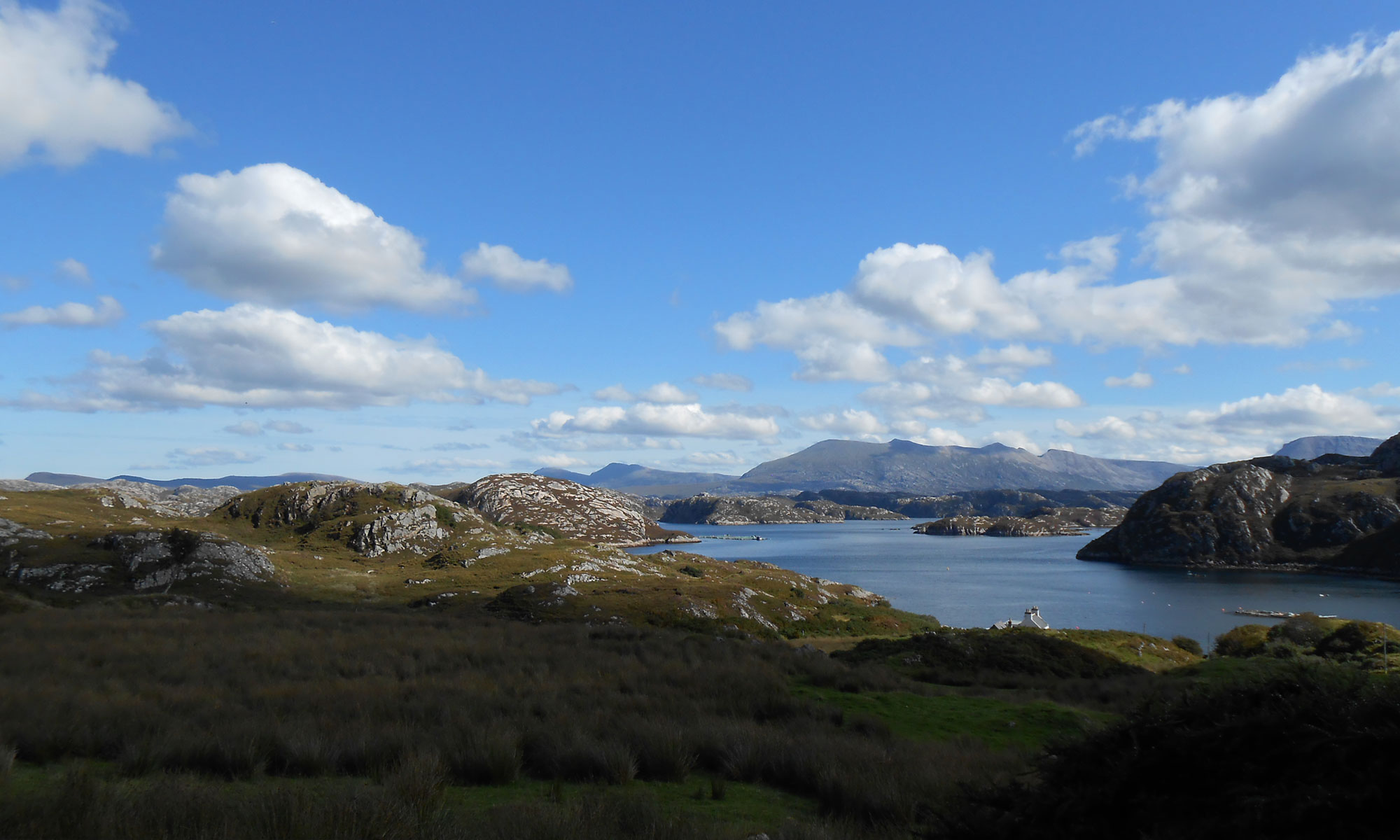Wenn man jeden Morgen aus dem Haus blickt und das gegenüber liegende Ufer so oft und intensiv betrachtet, dann wird es Zeit genau dort einmal wandern zu gehen. Irgendwo da hinten liegt Fionn Loch und direkt gegenüber am anderen Ufer in der Höhe liegt Loch Kernsary. Bis Fionn Loch ist es für Blixa zu weit, selbst der Rundweg am Ewe entlang und dann um Loch Kernsary ist lang. Doch wir haben den ganzen Tag Zeit und mit Pausen sollte er es schaffen.