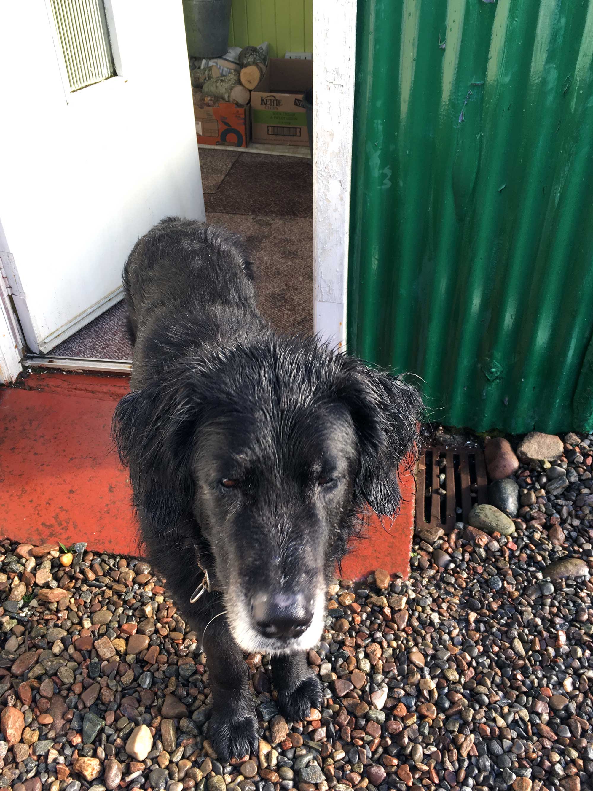 Montag, es ist ein kalter Tag, es schneit ab und zu, Aprilwetter. Für heute habe ich irgendwie keinen Plan. Doch als ich meine Wanderschuhe anziehen will, um mit Blixa zum River Ewe zu gehen gibt es ein Problem, wo sind meine Schuhe?